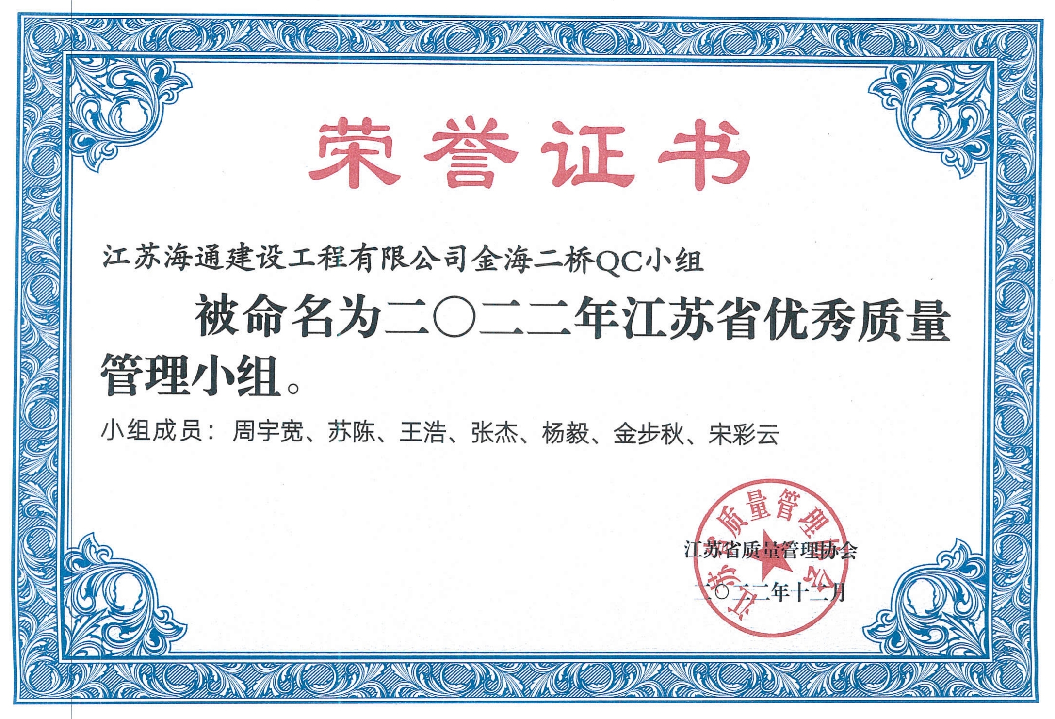 江苏海建千亿官方网页版金海二桥QC小组...