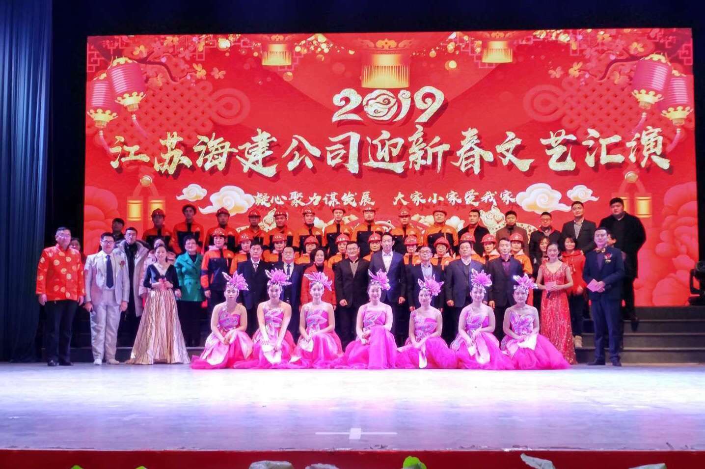 1月20日,江苏海建千亿官方网页版在市群艺馆举办2019年迎新春职工文艺汇演,千亿(中国)有限千亿官方网页版领导、共建单位、合作业务单位以及海建千亿官方网页版领导班子及千亿官方网页版职工代表和职工家属近400人观看演出。