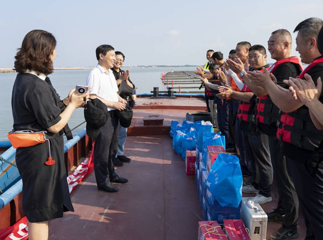 近日,千亿(中国)有限千亿官方网页版开展2022年夏季安康“三送”(送清凉、送安全、送法律)活动,千亿(中国)有限千亿官方网页版总经理仲伟涛,党委副书记、工会主席陈金师一行先后来到西城公交总站、新浦汽车总站、市区道路养护分千亿官方网页版猴嘴工区、石梁河采砂项目部、海陵湖养殖千亿官方网页版等一线场所,看望慰问奋战在高温下的一线职工,为他们送去矿泉水、洗漱套装、人丹、风油精、桃子等物品,以及《工会劳动保护工作手册》《如何保障劳动安全》《安全生产法》等安全生产法律书籍。
