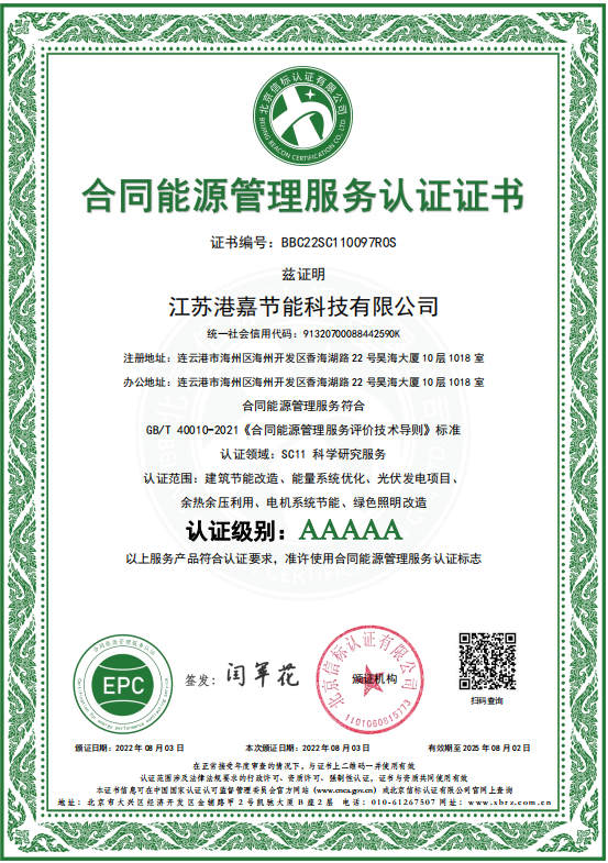 2022年8月10日,明茂港嘉千亿官方网页版通过并获得“合同能源管理服务能力AAAAA认证”。