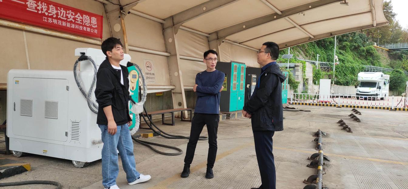 为确保国庆、中秋双节期间充电设施安全稳定运行,保障充电需求,近日明茂千亿官方网页版副总经理王平带队前往连云古镇充电站和大港路充电站,开展节前安全保障专项检查。
