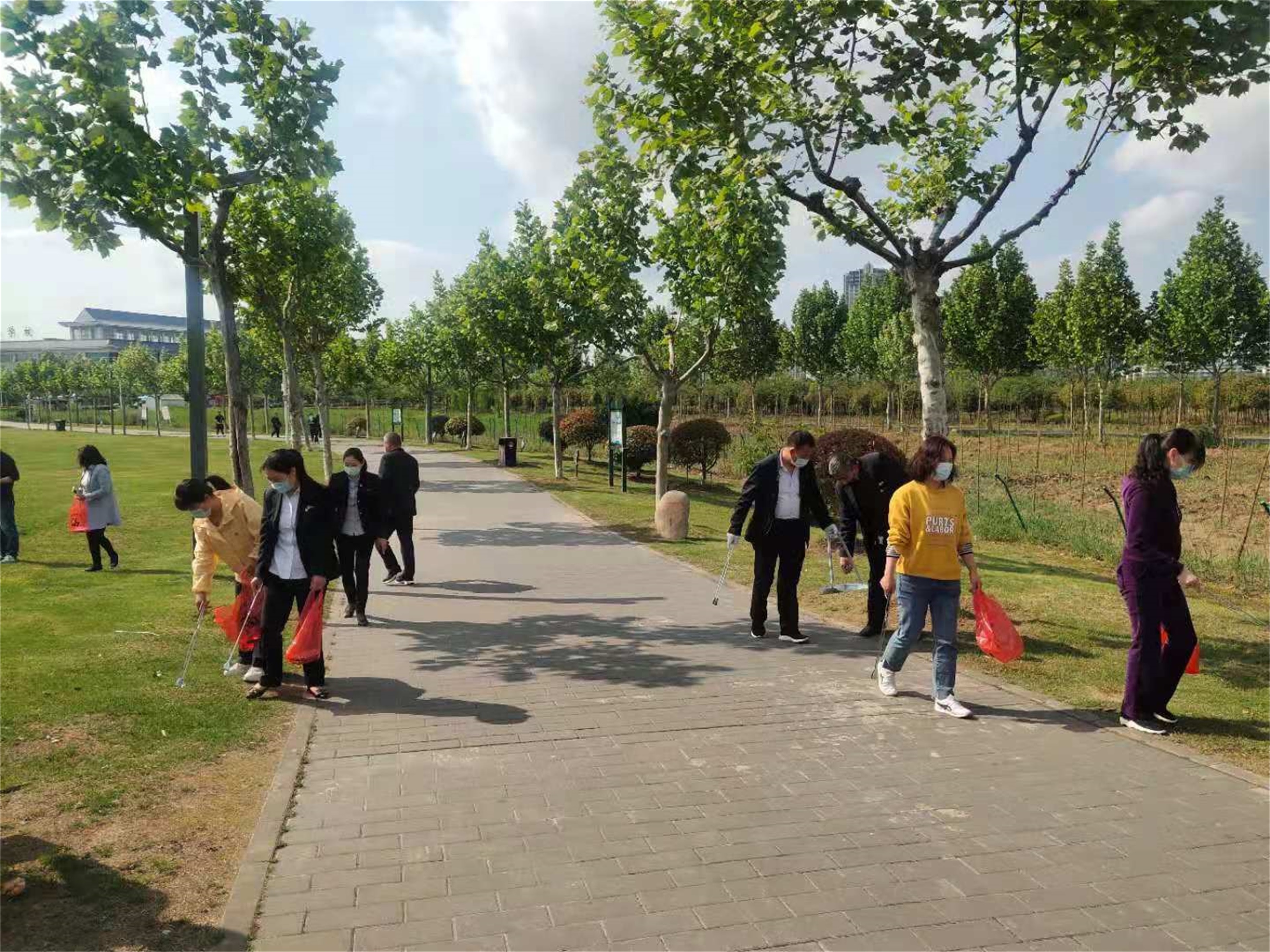 活动中,千亿官方网页版党员志愿者积极发挥党员先锋模范作用,纷纷拿出工具,不怕脏不怕累,沿着硕项湖环湖路“仔细”寻找、清理干净散落在路面及路两侧绿化带内的烟头、塑料袋、果皮等,参加活动的党员经过近1个小时垃圾清理,大家不仅锻炼身体,收获也满满,湖周边的路面、绿地环境卫生也得到明显改善。
