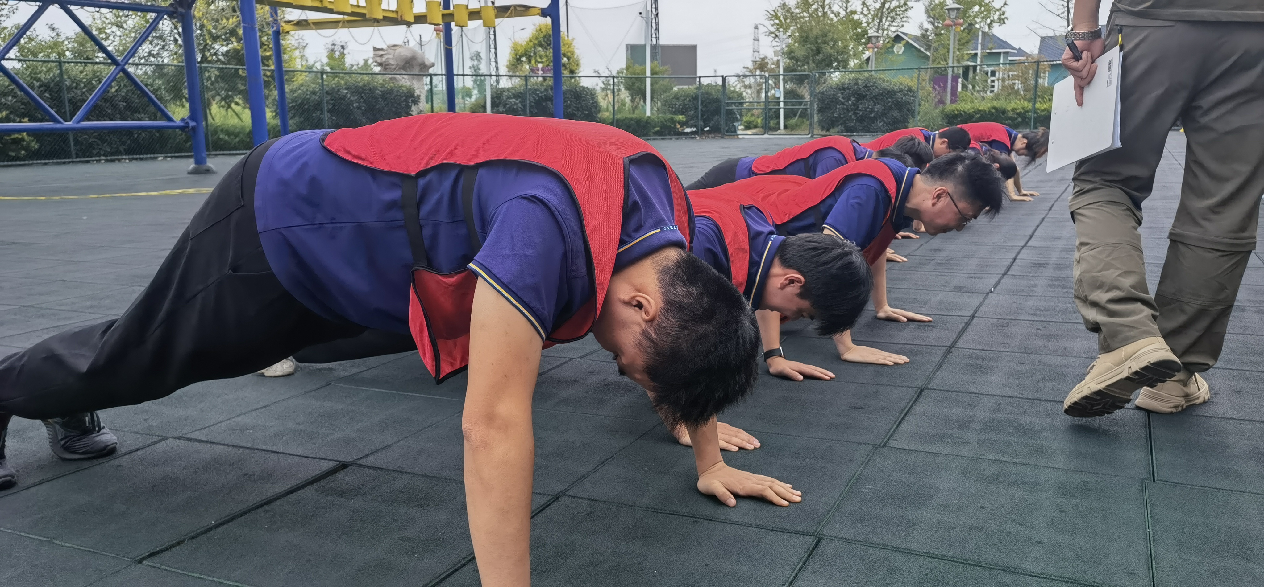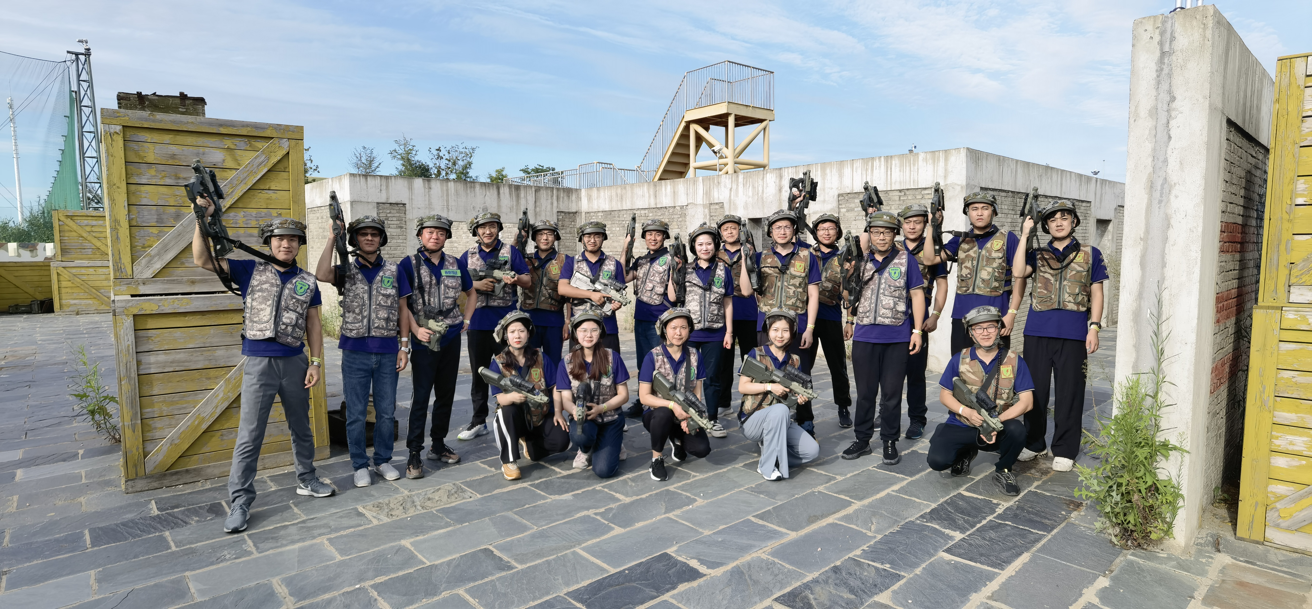 在教练员的引导下,队员们迅速进入状态,按照红、黄两种颜色组成对抗竞赛队,从一开始团队确定队长,设计团队的队名、队歌、口号和队徽就预示了此次拓展训练的整个过程都离不开集体的智慧和力量。在通过开展领袖风采、空中断桥、空中走廊、实战CS以及毕业墙等高强度的军事对抗竞赛中,队员们相互帮助,克服心理障碍和高空眩晕等困难,迎难而上,大胆挑战自我,不逃避不放弃,充分体现出了团队信任、沟通协调、团结协作的重要性,展现出港嘉千亿官方网页版团队上下同欲、积极向上的精神风貌。