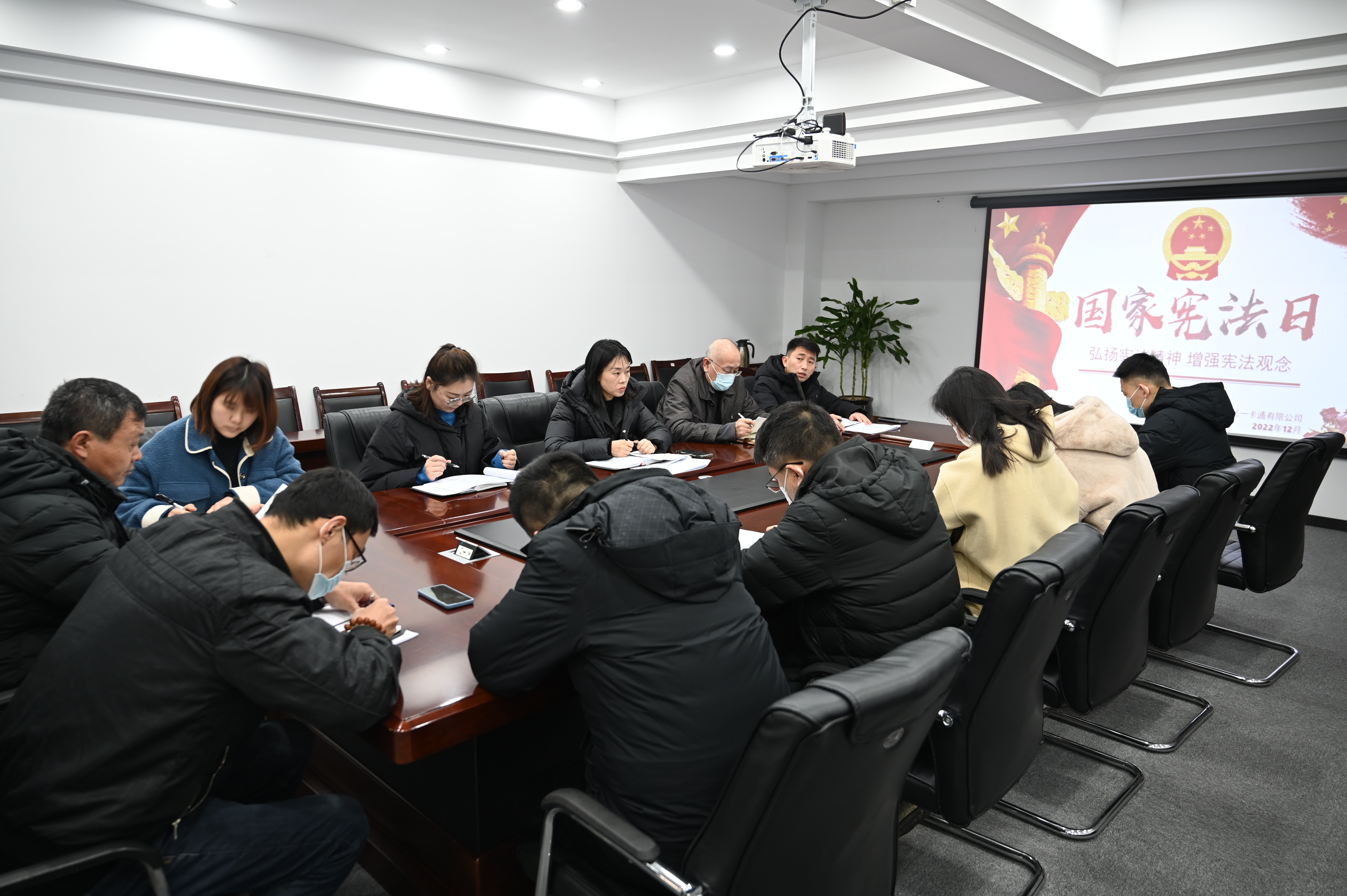 活动聚焦学习宣传贯彻党的二十大精神和深刻领会习近平法治思想,系统学习宪法、民法典、军人地位和权益保障法等法律法规。千亿官方网页版党支部书记、总经理叶星妍组织千亿官方网页版全体职工认真学习党的二十大报告中“坚持全面依法治国,推进法治中国建设”篇章,教育引导千亿官方网页版职工,立足本职岗位,尊崇宪法、学习宪法、遵守宪法、维护宪法、运用宪法,让宪法信仰植根内心深处,让宪法实践成为自觉行动。