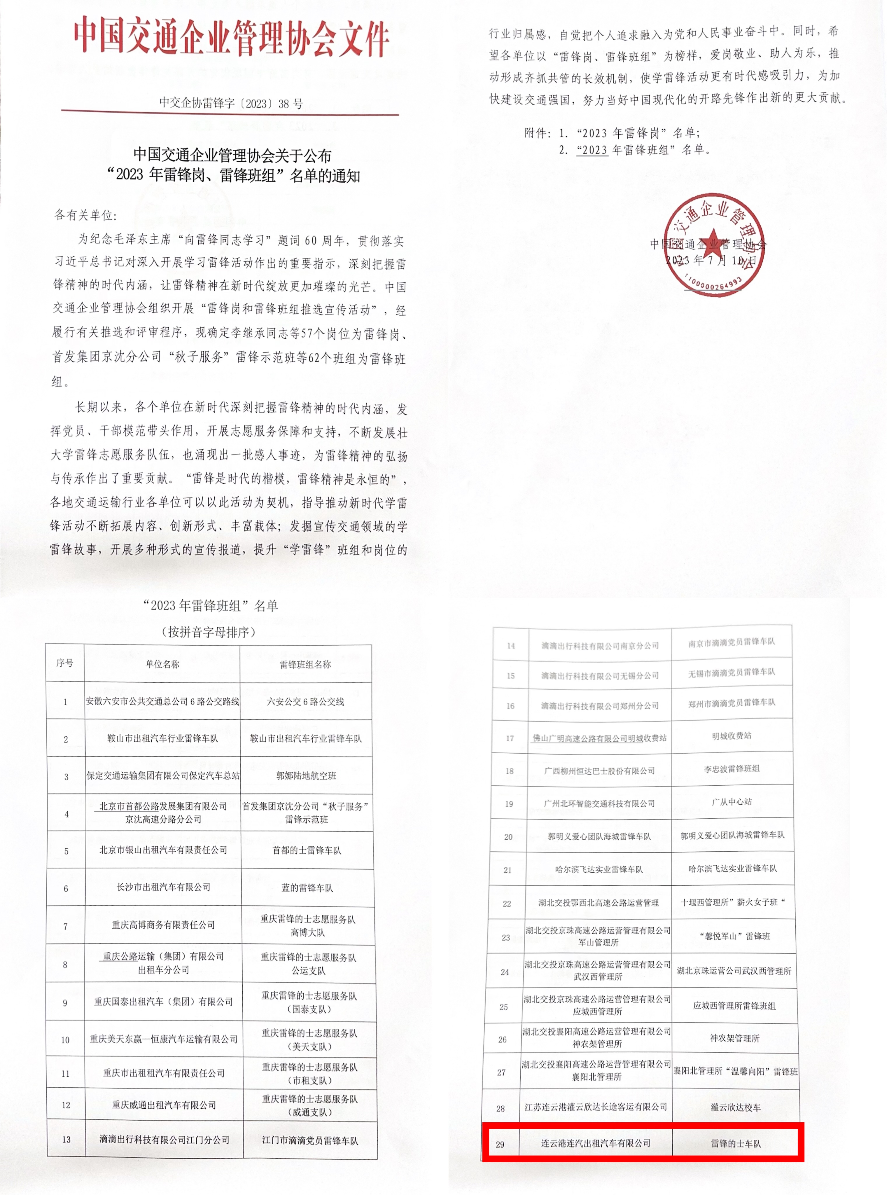 8月10日,中国交通企业管理协会公布2023年度全国交通行业雷锋岗和雷锋班组名单,连汽出租汽车有限千亿官方网页版“雷锋的士”车队荣获“雷锋班组”荣誉称号。