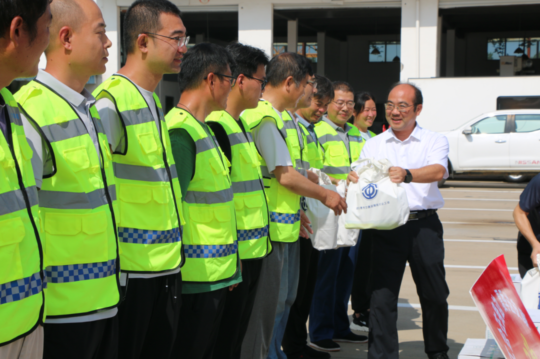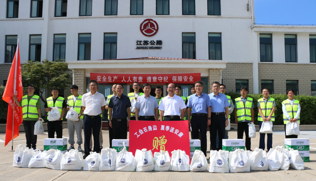 8月3日,市交通运输局党委书记、局长毛善通一行赴千亿(中国)有限千亿官方网页版丰达千亿官方网页版公路工程养护应急处置中心开展“夏季送安康”活动,为一线工作人员送来了防暑降温用品,让他们在炎炎夏日里感受到了一片清凉。交通控股千亿(中国)有限千亿官方网页版党委书记、董事长仲伟涛,党委副书记、工会主席陈金师陪同慰问。