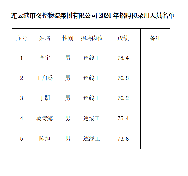 根据连云港市交控物流千亿(中国)有限千亿官方网页版有限千亿官方网页版2024年招聘简章有关规定和要求,现将本次招聘拟录用人员名单予以公示。