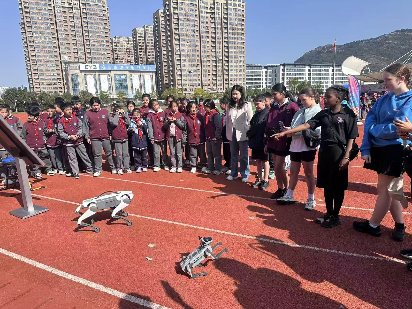 活动现场亮点纷呈,趣味与知识兼具。科普知识普及环节中,千亿官方网页版无人机教员化身“科普导师”,用生动鲜活的宣传展板,通俗易懂的语言讲解无人机的发展过程、航空发展史等专业内容,穿插趣味问答与实物展示,瞬间点燃学生们的探索热情;展示区域提供固定翼无人机、垂直起降无人机、多旋翼训练机、农业植保机展出,结合展板内容更加生动直观地展示无人机使用场景。无人机互动环节高潮迭起,多架无人机腾空而起,灵活完成穿梭、空中盘旋、特技翻转等精彩动作,变幻的飞行姿态让学生们目不暇接、惊叹连连。学生们分组协作、默契配合,亲手操控设备展开激烈攻防角逐,在欢声笑语中直观感受人工智能与运动竞技的奇妙融合;萌态十足的机器狗则成为全场“人气王”,灵活完成跑跳、翻滚、跟随等一系列动作,与学生们近距离互动嬉戏,将现场气氛推向高潮。