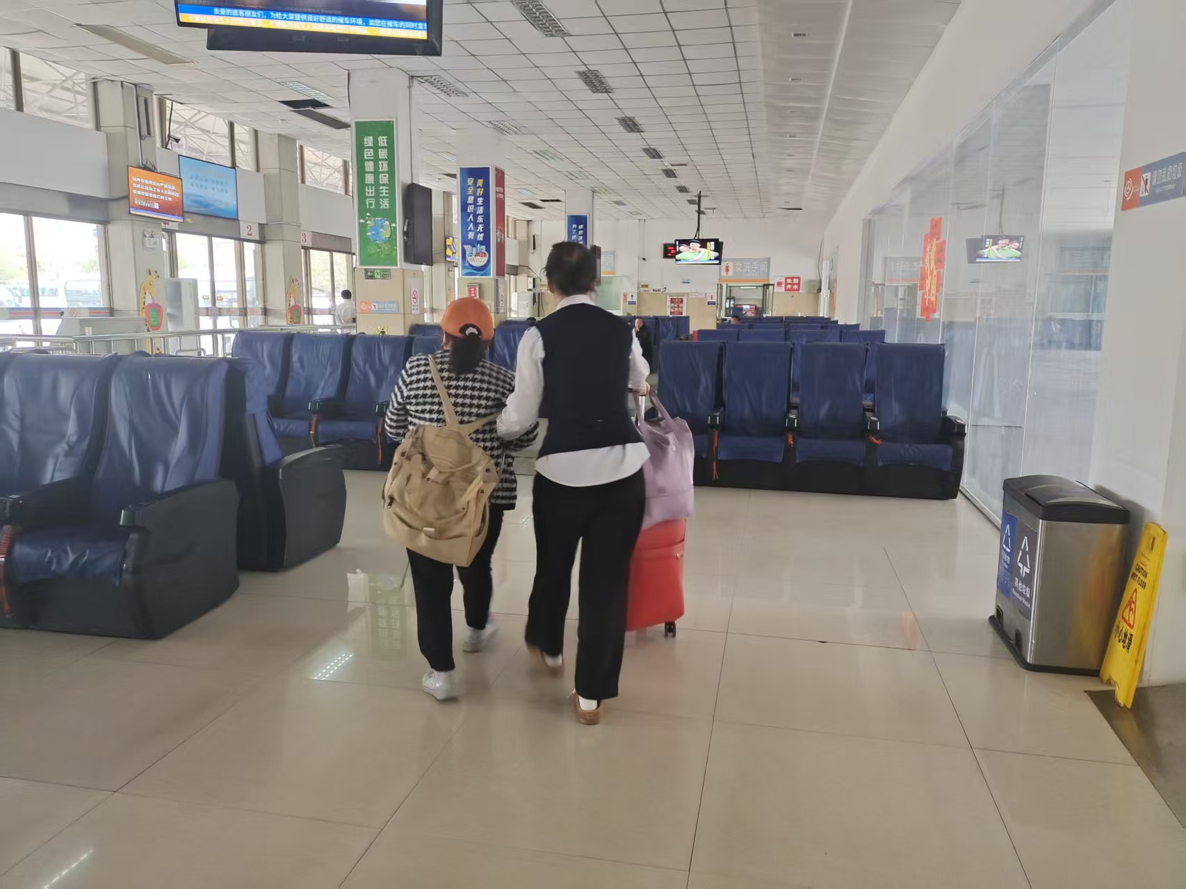 “您好,是要坐车吗?”骆青立刻快步上前,声音特意放轻,左手轻轻扶上旅客的胳膊肘,右手顺势接过她手里沉甸甸的布包。原来这位旅客要去沭阳,独自出门来苏欣快客站,刚进门就慌了神。“您别着急,我陪您办手续”骆青一边安抚,一边扶着她往购票窗口走,每过一个拐角、上一级小台阶,都轻声提醒:“前面慢一点,有个小坡”“窗口到了,我帮你递身份证”。选好了去沭阳的班次,骆青帮着核对信息,把车票和身份证小心翼翼塞进旅客手心:“您拿好,我扶着你去检票、乘车。”接着,骆青拎着布包、行李箱带旅客过安检、检票。上车时,骆青踩着台阶先帮旅客把行李放好,再扶着她上车坐稳,不忘叮嘱驾驶员:“麻烦您路上多照看一下。”
