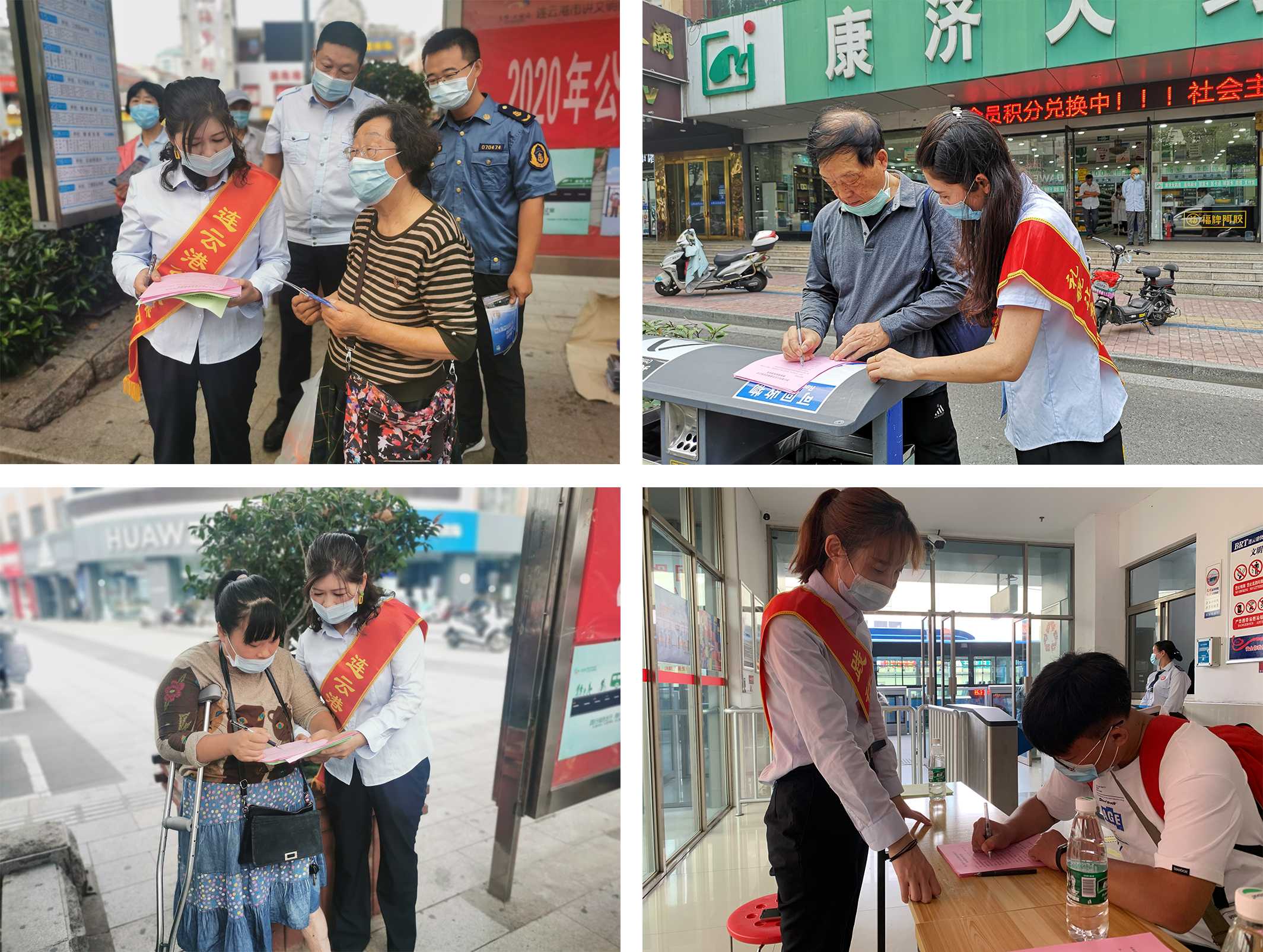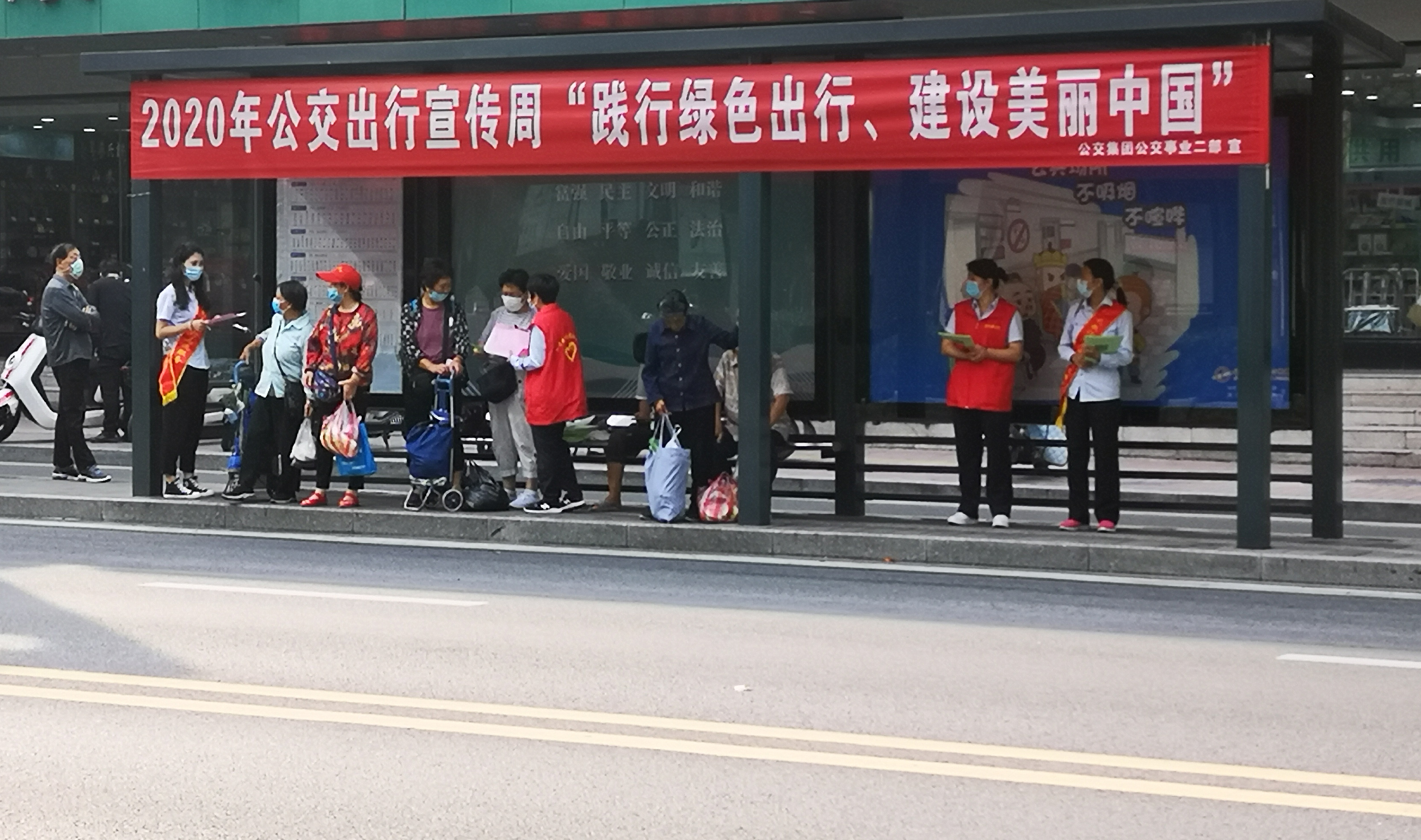 9月21日上午,活动正式拉开帷幕,根据活动安排,公交千亿(中国)有限千亿官方网页版组织开展2020年公交出行宣传周集中宣传工作。一是广泛发布以“践行绿色出行、建设美丽中国”为活动主题的城市公共交通公益性广告,在主要公交场站张贴宣传海报,通过公交车厢内车载LED显示屏、BRT中间站台等滚动播放宣传标语,营造良好的活动氛围。二是选择在海州客运站、步行东街、购物中心南、火车站等四处主要客流集散点设立公交宣传咨询服务点,现场悬挂主题活动横幅,安排工作人员身披绶带,现场向市民群众发放公交出行宣传周活动倡议书及公交最新出行手册,并以调查问卷形式广泛征求市民乘车意见,与市民现场互动,维护乘车秩序,引导市民安全、文明、有序出行。活动现场共发放公交出行宣传周倡议书400份,公交出行手册900份,征求意见表300份。