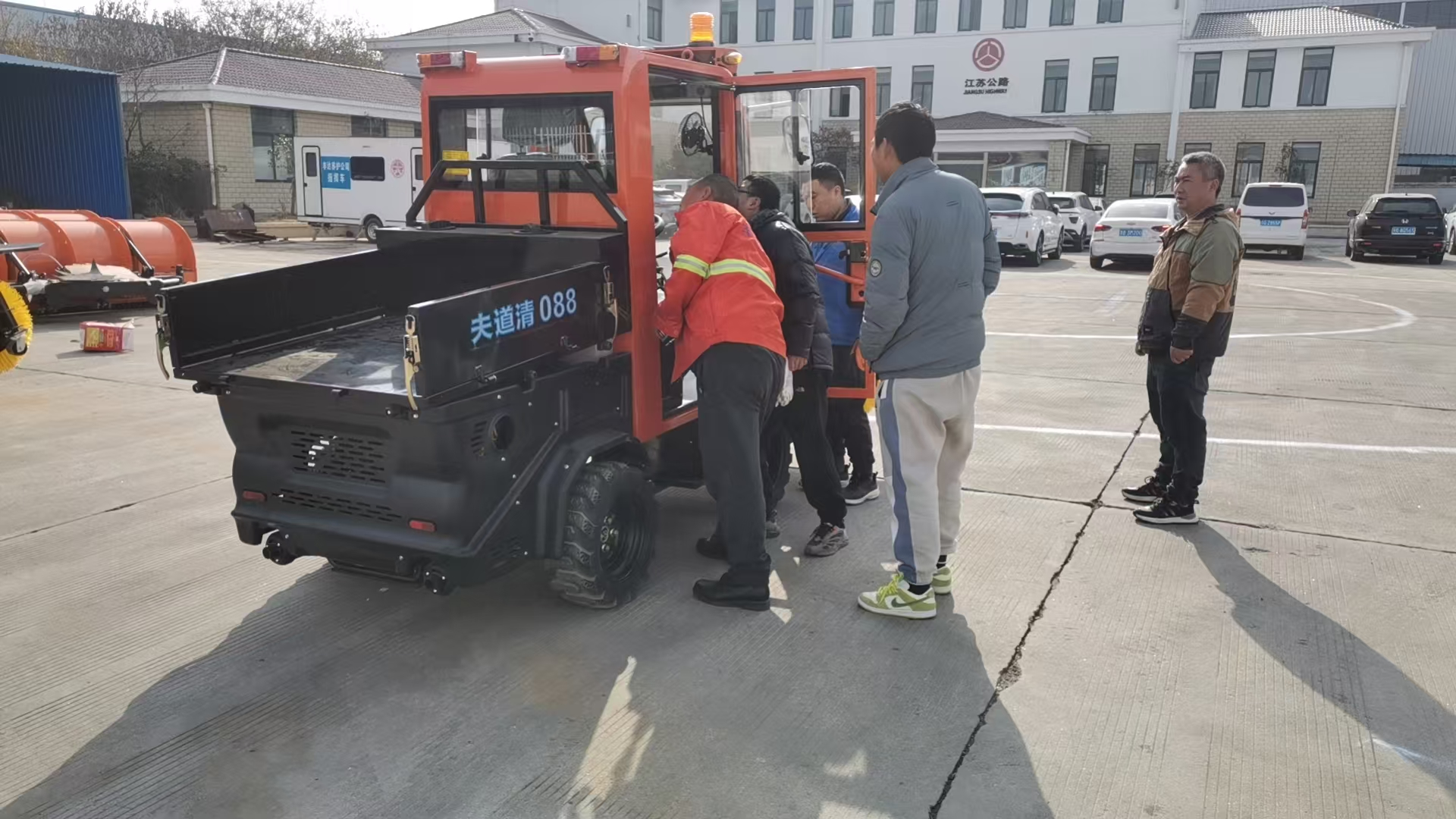 为进一步提升冬季千亿官方网页版管养的港城大道非机动车道、城市广场、人行步道等狭小区域的道路积雪清扫,增强应急处置能力,丰达千亿官方网页版近日在大浦养护基地内对新采购的2台四驱全齿轮传动小型驾驶式扫雪车进行了安装调试和人员操作培训。