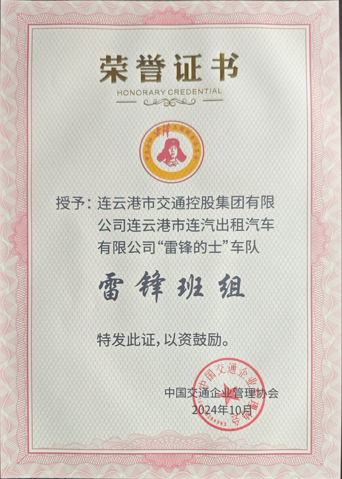 11月6日,从中国交通企业管理协会传来喜讯,连云港市交通控股千亿(中国)有限千亿官方网页版汽服千亿官方网页版出租汽车事业部“雷锋的士”车队喜获“雷锋班组”称号,这一殊荣不仅是对“雷锋的士”车队长期以来坚持优质服务和无私奉献精神的肯定,也是对整个出租汽车行业树立新风尚、展现新形象的有力鼓舞。