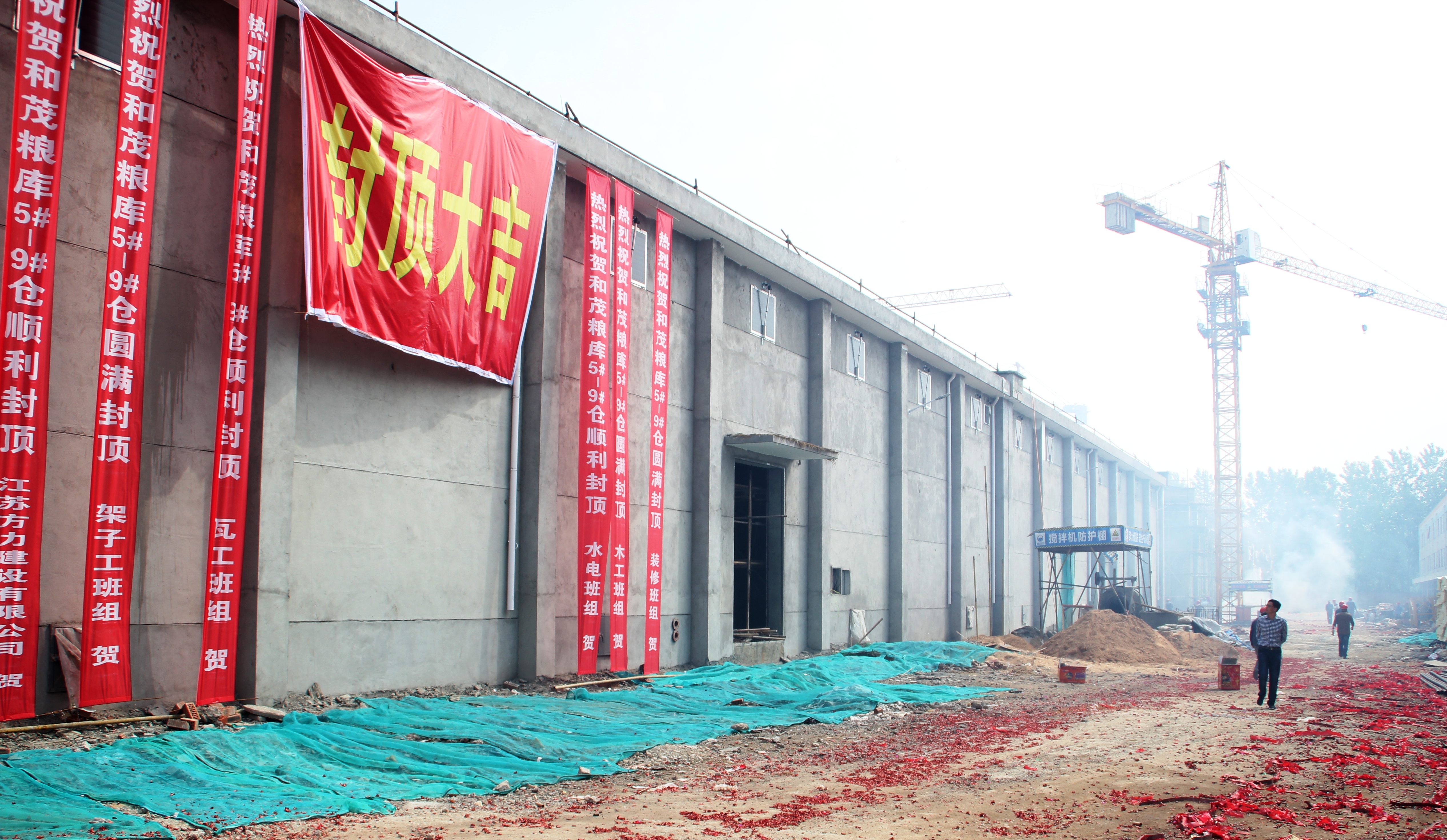 5月10日上午9时28分,总投资4000万元的连云港和茂粮食仓储项目二期工程顺利封顶。汽车千亿官方网页版党委书记周文君、党委副书记李永成、副总经理赵东明、新海粮库副主任姜永好,施工、监理单位主要领导以及千亿官方网页版各单位、处室相关负责人到达施工现场,参加观礼。