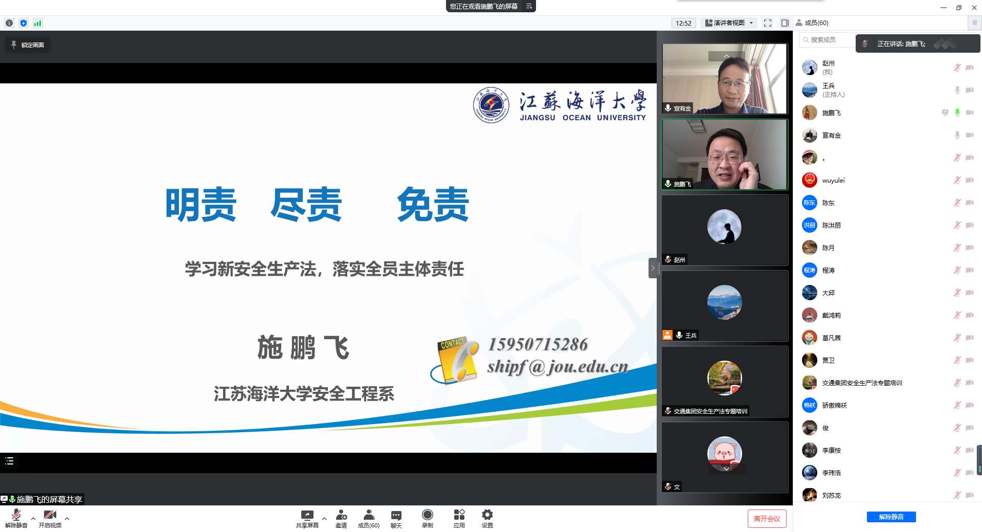 为进一步强化安全生产宣传教育,提升管理人员安全生产意识,打牢新《安全生产法》贯彻落实的工作基础,3月30日,交通千亿(中国)有限千亿官方网页版开展一期线上新《安全生产法》专题培训,特邀江苏海洋大学教授施鹏飞担任主讲。千亿(中国)有限千亿官方网页版全体职工参加培训,交通千亿(中国)有限千亿官方网页版总经理宣有金担任主持,交通控股千亿(中国)有限千亿官方网页版副总经理、交通千亿(中国)有限千亿官方网页版董事长吴心航出席培训。