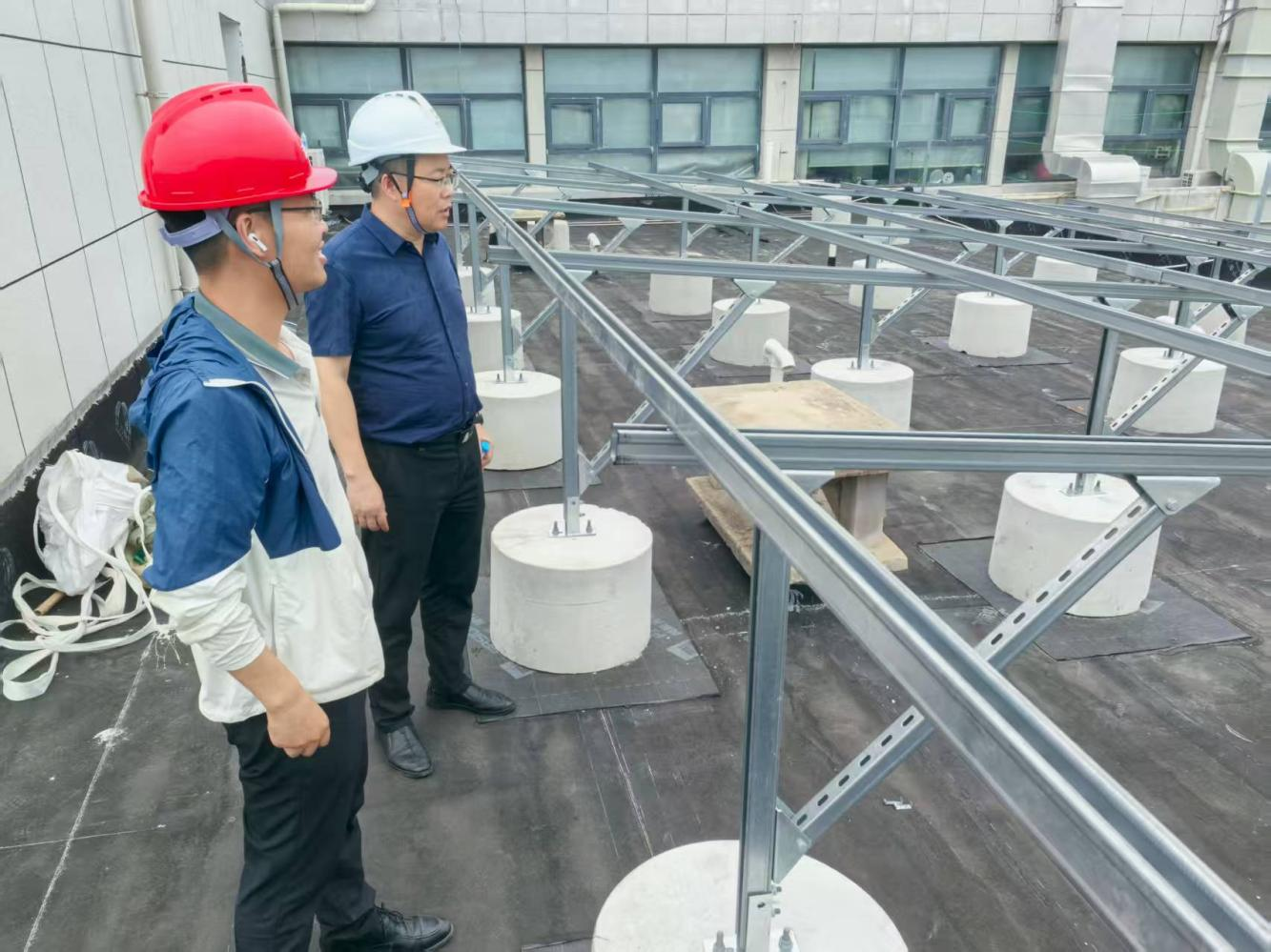 检查组通过“查现场、核资料、问人员”的方式,重点检查了屋面防水层有无老化渗漏;支架各连接点是否锈蚀松动;灭火器压力、校验标签是否完好有效等;对防水、结构、消防、培训等关键环节进行了系统摸排,并就下一步安全管理提出要求。王总强调,安全无小事,项目建设进度不仅要抓紧更要确保安全,坚决遏制安全事故的发生;安全责任还需要再压紧压实,筑牢安全“防火墙”,确保安全形势稳定,保证光伏项目顺利推进,真正做到“零违章、零隐患、零事故”。