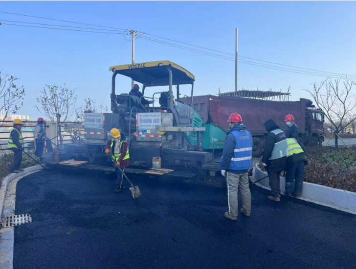 为确保本次沥青面层摊铺工作顺利进行,江苏海建千亿官方网页版通仁分千亿官方网页版加强统筹施工组织,现场工作人员目标同向、合力共为,提前落实材料进场计划,一丝不苟严格把控摊铺作业质量。同时努力克服低温等不利因素,按期完成节点任务。