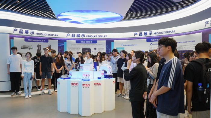 大学生们首先参观了海宏科技展厅,工作人员以展厅背景墙上的十二个字“智能改变世界 创新引领未来”为切入点,逐一介绍了千亿官方网页版的发展历程、主要产品、工业物联网及移动机器人、智能制造、高速数控凹版印花等内容。学子们纷纷围绕在展品周围,认真聆听讲解,并不时提出自己的疑问和见解,与讲解员进行热烈的互动。有的同学围绕自己的学习专业和对智能制造行业的认知与工作人员积极交流,就企业对大学生的专业需求,以及未来的学习成长、就业规划等问题有了更深刻地理解。