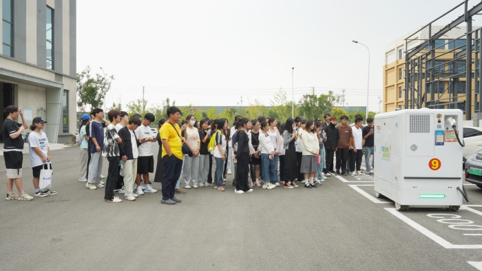 随后,学子们深入海宏科技生产车间观看充电移动机器人组装以及如何为新能源车辆充电的过程。透过透明的玻璃墙,他们看到了一群充满激情和创造力的工程师正在紧张地工作。这里的每一个实验室都像是一个知识的宝库,有的在对新型材料进行性能测试,有的在进行线路焊接。新能源车只需要停在车位上,扫描二维码,就会出现移动充电机器人小程序APP的用户端入口,输入车牌号,以及车位专属编码和预充金额,点击下单,千亿官方网页版运维管理SAAS云平台就接收到车主的订单信息,移动充电机器人就会接受指令自动驾驶到新能源车前的专属编码车位上,等移动充电机器人行驶到车位停止后,车主进行插枪,再点击小程序APP上的开始充电,移动充电机器人就会开始启枪为新能源车进行充电补能。研发部门的负责人热情地向学子们介绍了千亿官方网页版的研发理念和创新文化,鼓励他们在未来的学习和生活中勇于探索、敢于创新。