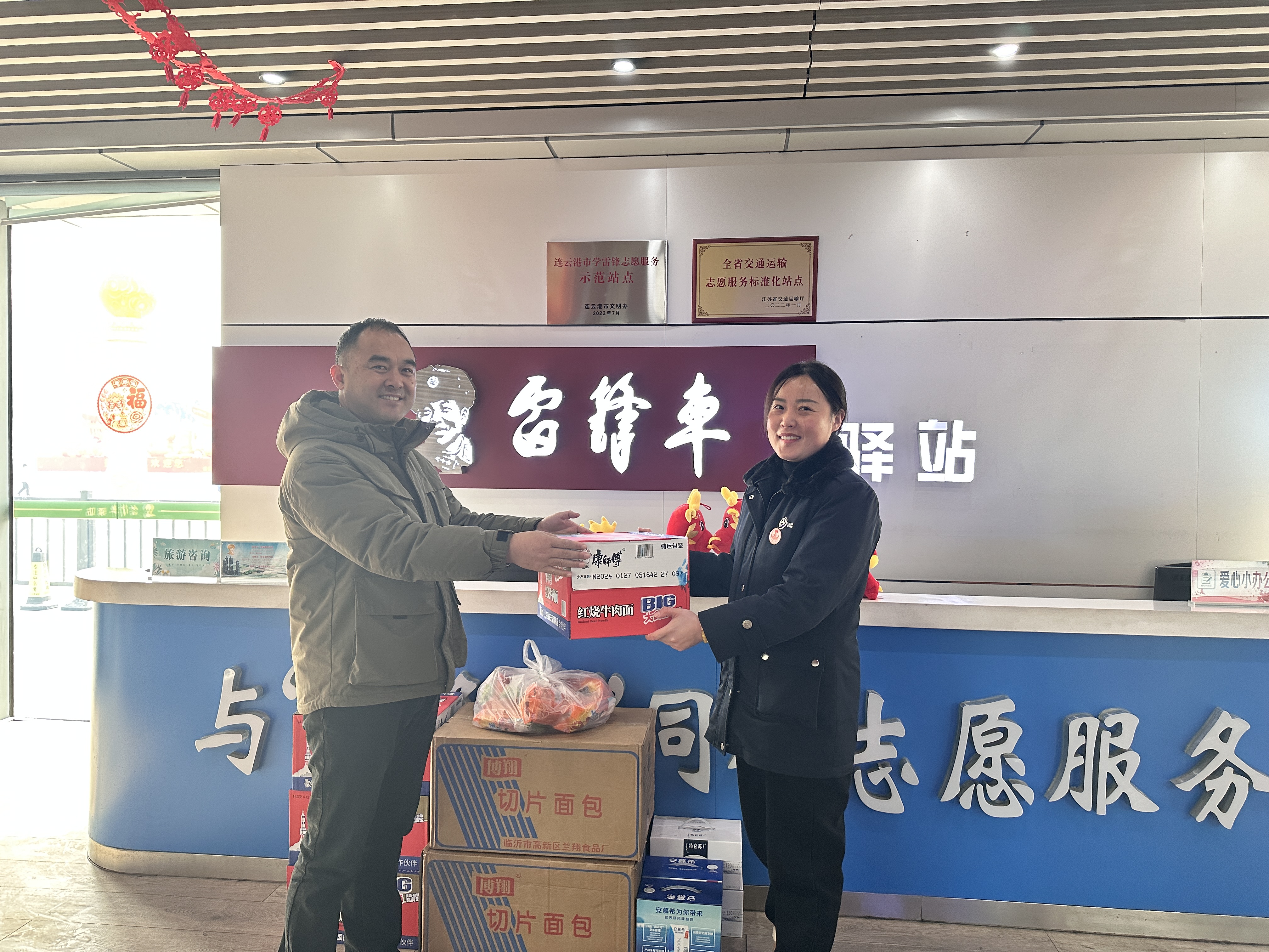 2月8日,在连云港市高铁站“雷锋车”驿站前,一抹抹“志愿红”随处可见,她们为假日客流高峰做好了准备。汽车千亿官方网页版工会为坚守在“雷锋车”驿站的“雷锋车”手们送上面包、牛奶等慰问品,为他们送去节日慰问与祝福。为应对客流高峰,春节假期“雷锋车”手志愿者们要连续奋战在高铁站,开展旅客帮扶、交通指引等工作。汽车千亿官方网页版副总经理、工会主席张春军表示:在春节出行客流高峰,“雷锋车”手们坚守岗位,无私奉献,不折不扣地落实千亿官方网页版的决策与部署,以群众所需为己任,温暖旅客回家路,展现了新时代“雷锋车”手的风采。