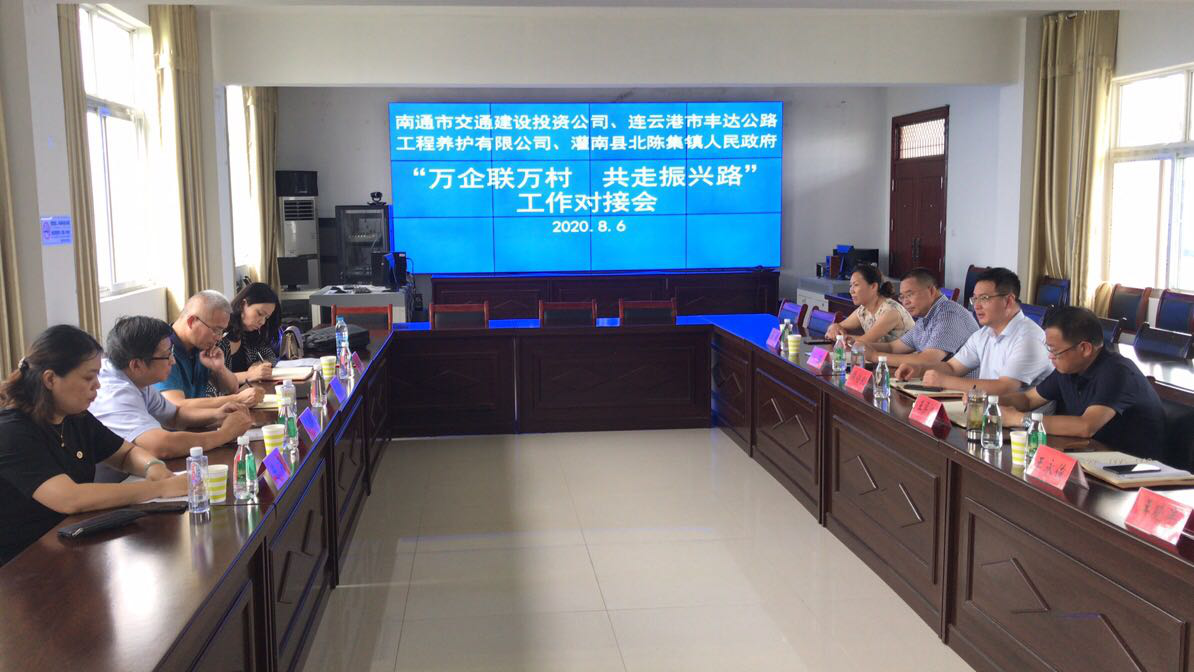 为积极服务乡村振兴战略,8月6日,丰达养护千亿官方网页版与南通交通建设投资千亿官方网页版、灌南县北陈集镇人民政府在灌南县北陈集镇召开了“万企联万村,共走振兴路”工作对接会。南通交通建设投资千亿官方网页版副书记张燕滨、丰达养护千亿官方网页版总经理王梁洲和北陈集镇人民政府党委书记周倍良等相关人员参加了会议。