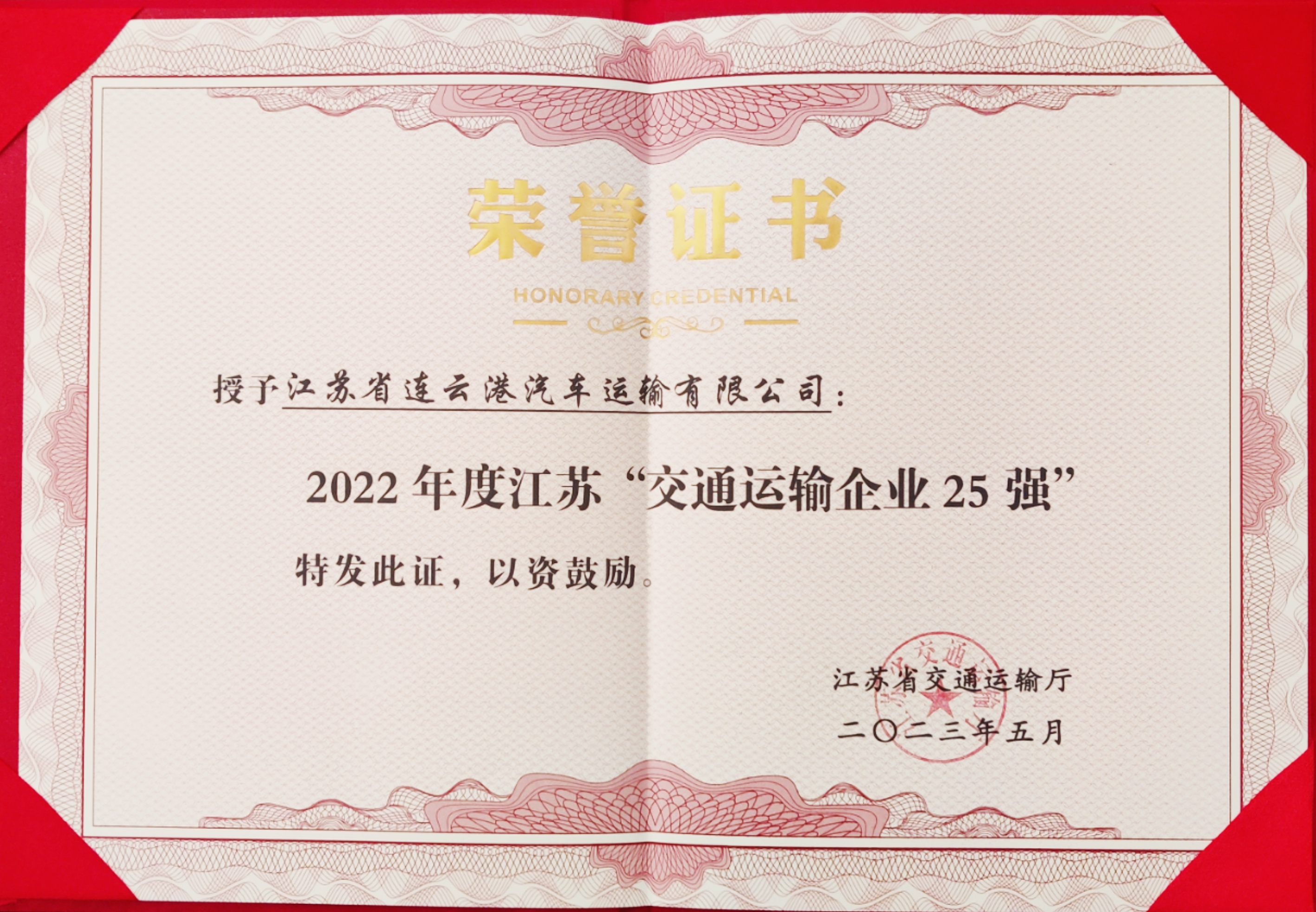 为助力交通运输企业做大做强,促进交通运输产业高质量发展,江苏省交通运输厅开展2022年度江苏“交通运输企业25强”认定活动,汽车千亿官方网页版积极参与评比。经过专家、工作组及领导小组审核等认定程序,汽车千亿官方网页版获得2022年度江苏“交通运输企业25强”荣誉称号,5月16日,江苏省交通运输厅召开认定名单发布会,为获得此类殊荣的各单位颁发了荣誉证书。