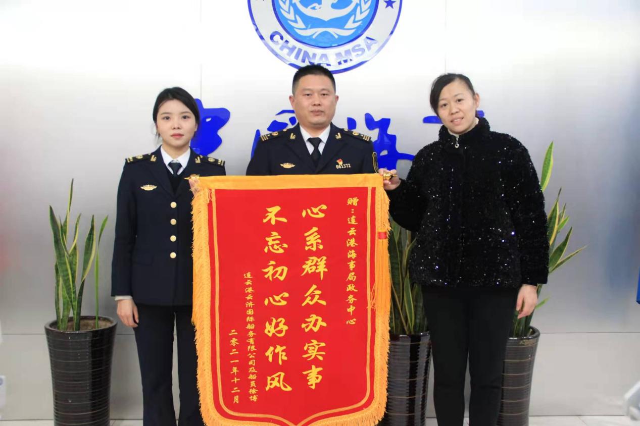 11月28日,物流云济千亿官方网页版接船员徐博委托申办化学品船货物操作高级培训换证业务。当天,业务员在申办中发现船员所持证书化学品船货物操作高级培训科目已过五年时效期,不能进行更新换证。千亿官方网页版及时与船员沟通进一步了解情况,得知由于近年疫情影响,油化一体船业务骤减,船员近几年只能在普通货船工作,导致培训过时效期。了解情况后千亿官方网页版积极联系到连云港海事局政务中心,咨询相关政策。经过多方沟通后,在连云港海事局政务中心葛景勇主任帮助下,陈佳琳科员通过“绿色通道”加急办理,12月27日海员徐博化学品船货物操作高级培训资格证申办完成,为了表示感激之情,云济千亿官方网页版及船员联名送上锦旗。