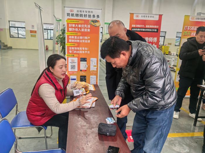 事业部工作人员现场为驾驶员讲解智慧码绑定流程:先到分千亿官方网页版领取智慧码,再注册嘀嗒出租司机APP,通过嘀嗒出租司机APP绑定智慧码,绑定成功后乘客通过扫码支付车费,费用即刻进入司机个人银行卡内没有延误。此智慧码是驾驶员的专属智慧码,如果后期驾驶员的智慧码出现丢失或者破损可以重新领取智慧码。工作人员鼓励驾驶员向乘客推荐使用“出租车智慧出行”小程序叫车,用小程序叫车不仅有更多的优惠政策,还可以节约乘客出行等待时间,提升出行效率,此外乘客还可以在线评价驾驶员的服务水平。