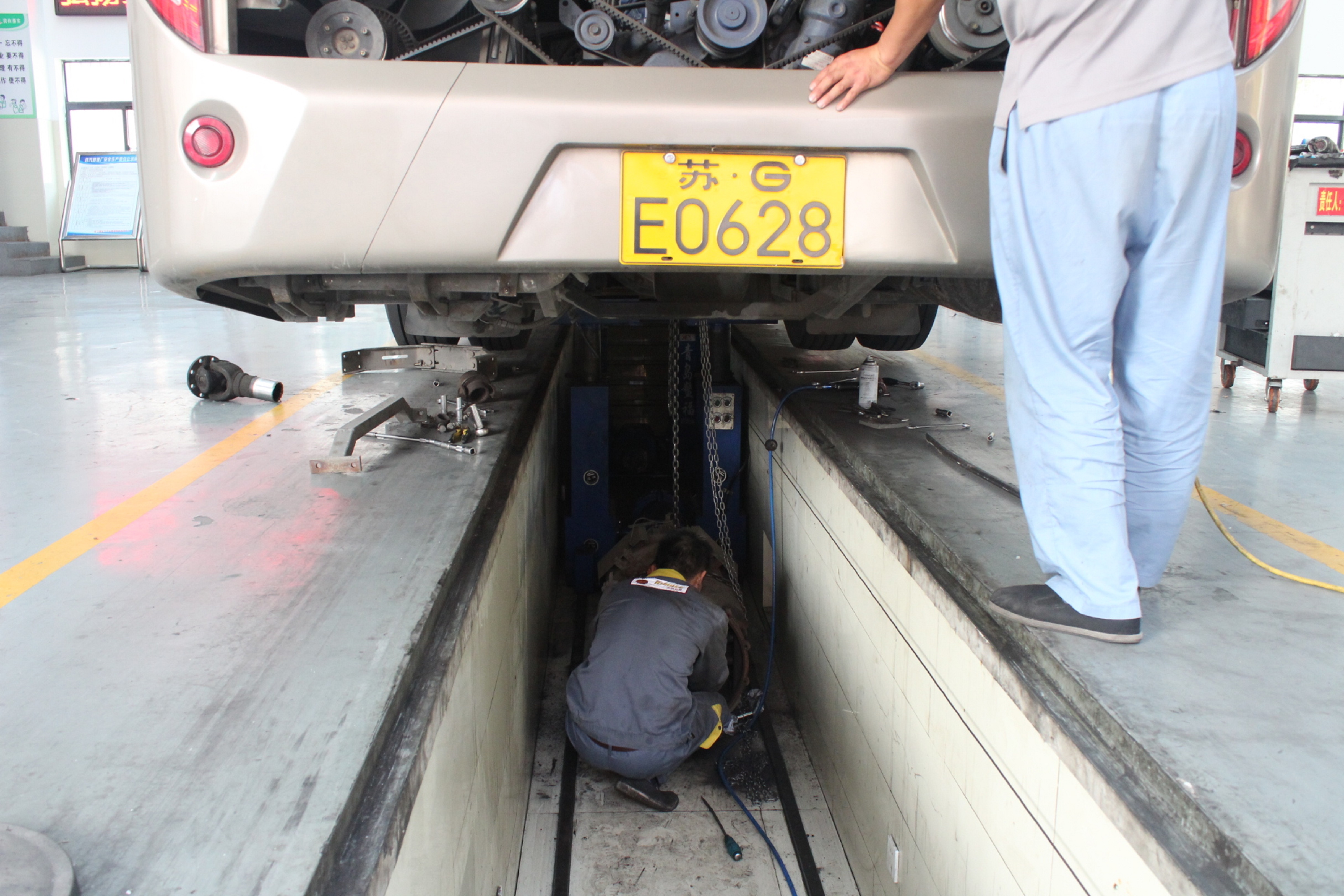 为了能及时处理运营车辆出现的突发故障情况,确保营运车辆安全运行,修理人员国庆期间和往常一样按时到岗,他们每天蹲在地沟里、爬在汽车下,跟机油、黄油、齿轮油密切接触,和乱如麻、理不清的电线打交道。每天工作下来,常是一脸汗水、满身油泥,累得腰酸腿疼,苦脏累不说,连身好的衣服也不能穿,但他们从来不惧任何艰苦的环境。