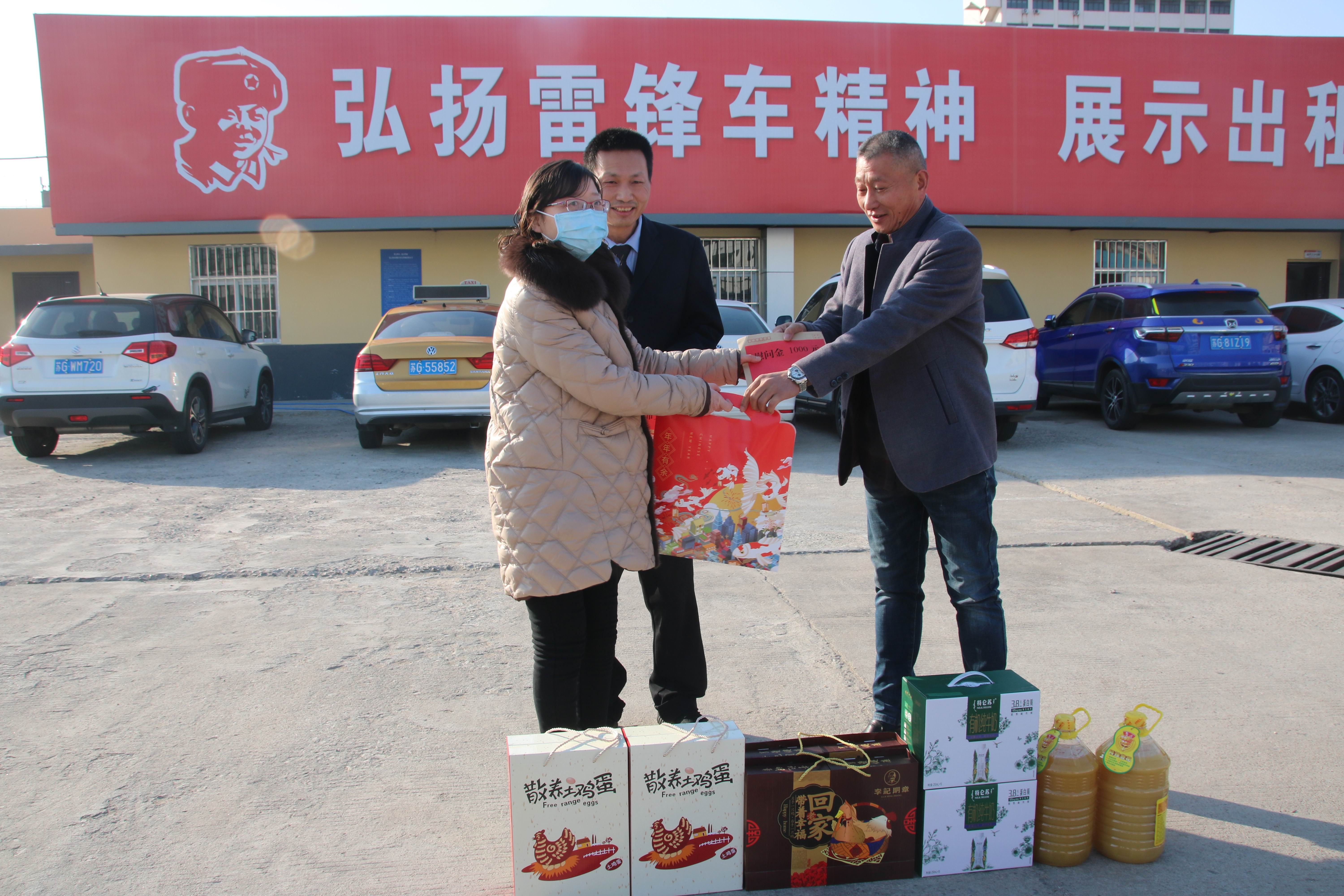 2月9日上午,海州区文明办沈艳主任专程来到汽服千亿官方网页版出租汽车事业部看望慰问了海州好人的哥朱洪树、韦号方。为他们带来节日礼物、并向他们致以新年的问候和祝福。