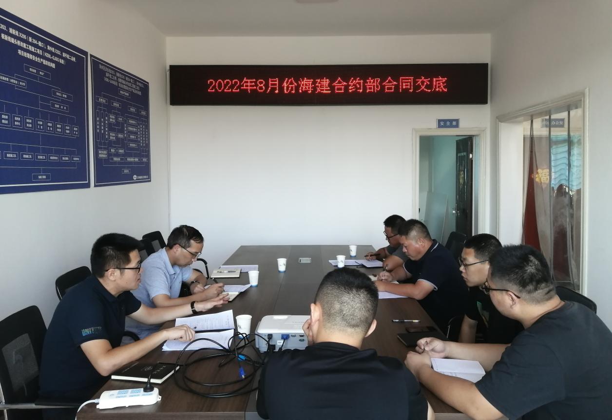 8月23日下午,江苏海建千亿官方网页版到海州区洪东线X353、浦新线X205(新204-魏口)、海中线X252、浦平线二总桥、板新线磕头桥改建工程项目部开展合同、法务交底培训。