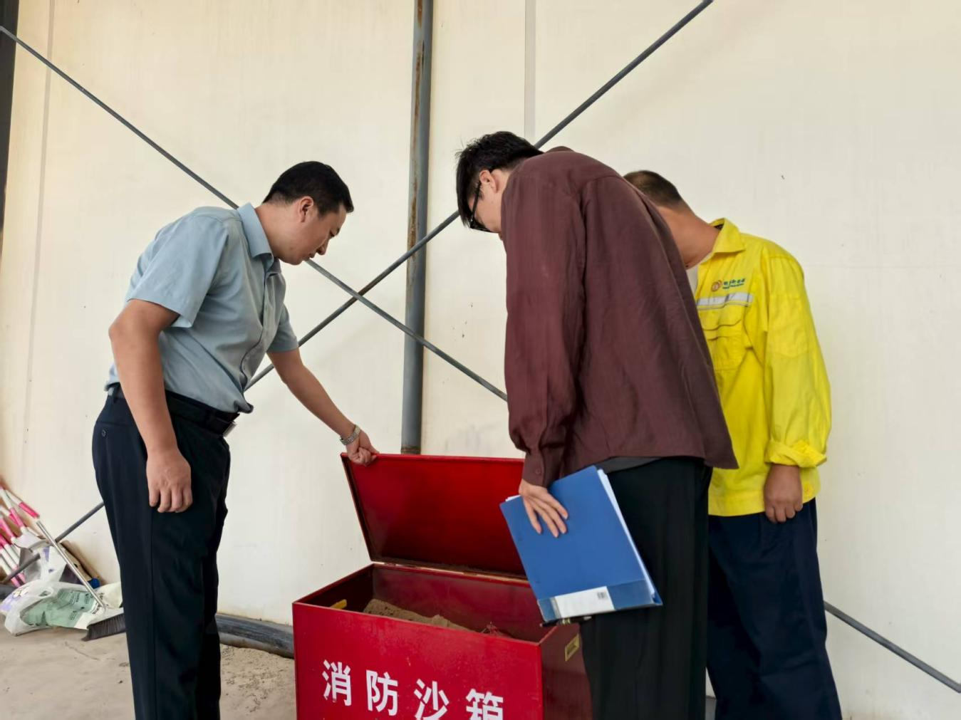 在各场站检查现场,周辉一行首先对消防沙箱进行细致核查。检查小组逐一查看沙箱内消防沙的干燥度与纯净度,确认无杂物混入影响灭火效果;同时检查沙箱箱体是否完好、有无锈蚀或破损,箱盖是否能快速开启,周边是否配备消防铲等配套工具,且无遮挡物阻碍应急取用。针对个别场站消防沙箱周边存在少量杂物的情况,周辉当场要求工作人员立即清理,并强调“消防设施是安全最后一道屏障,必须时刻保持完好可用状态,绝不能有半点松懈”。