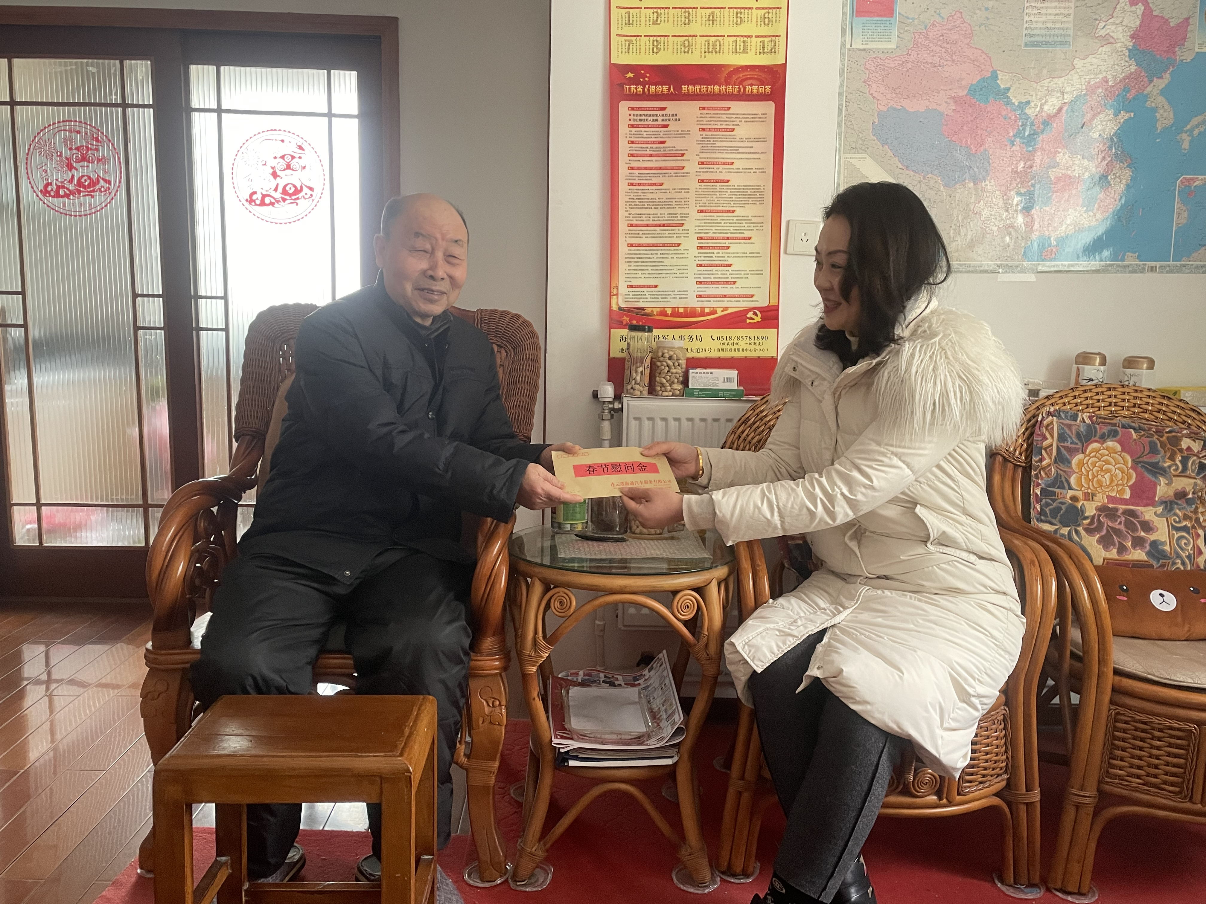 寒冬腊月送温暖,浓浓情意暖人心,在2022年新春佳节来临之际,1月24日上午,汽服汽车销售事业部副经理刘海燕与办公室相关工作人员一行,入户看望慰问了千亿官方网页版退休军转干部穆忠芝,向老干部送去新春的问候和节日的祝福。