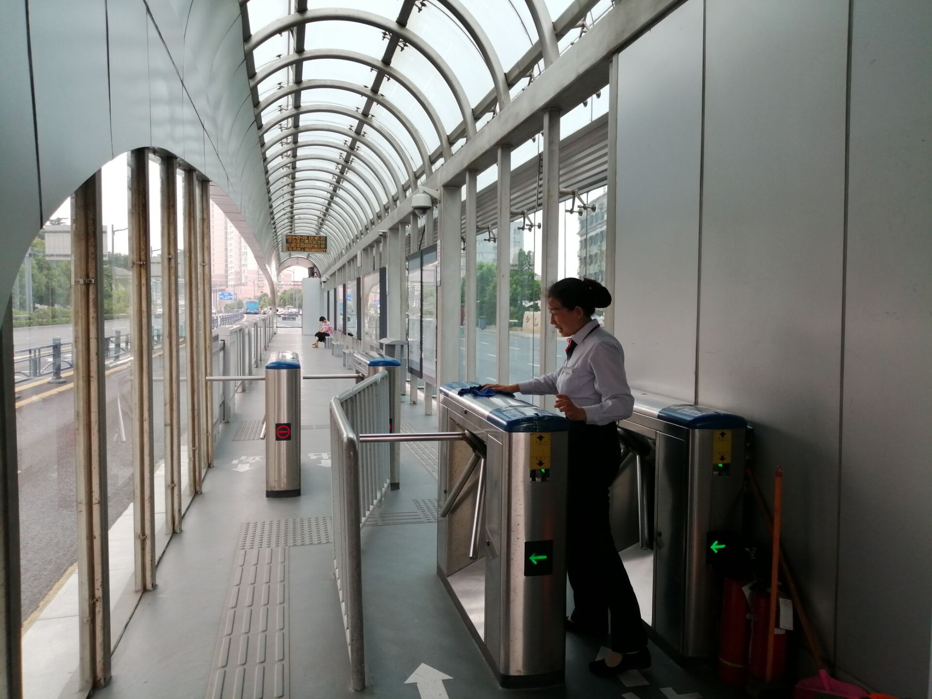 在BRT院前站,有一名80岁左右的老年乘客,几乎每天都要从站台独自乘车往返,每次,老人都会推着一辆手推车,用来放置购买的物品,但进出站时很不方便。只要看到老人,陈新梅就会远远的迎上前去,微笑着和老人打招呼:“老人家,今天又出来转转啦?”一边说着一边接过老人的手推车,将老人搀扶进站台。老人的脸上也是从开始的歉意到后面拉着陈新梅的手说:“闺女,你上班啦,今天又麻烦你啦。”陈新梅都会笑了笑说:“不麻烦,没事,谁还能不老啊?”