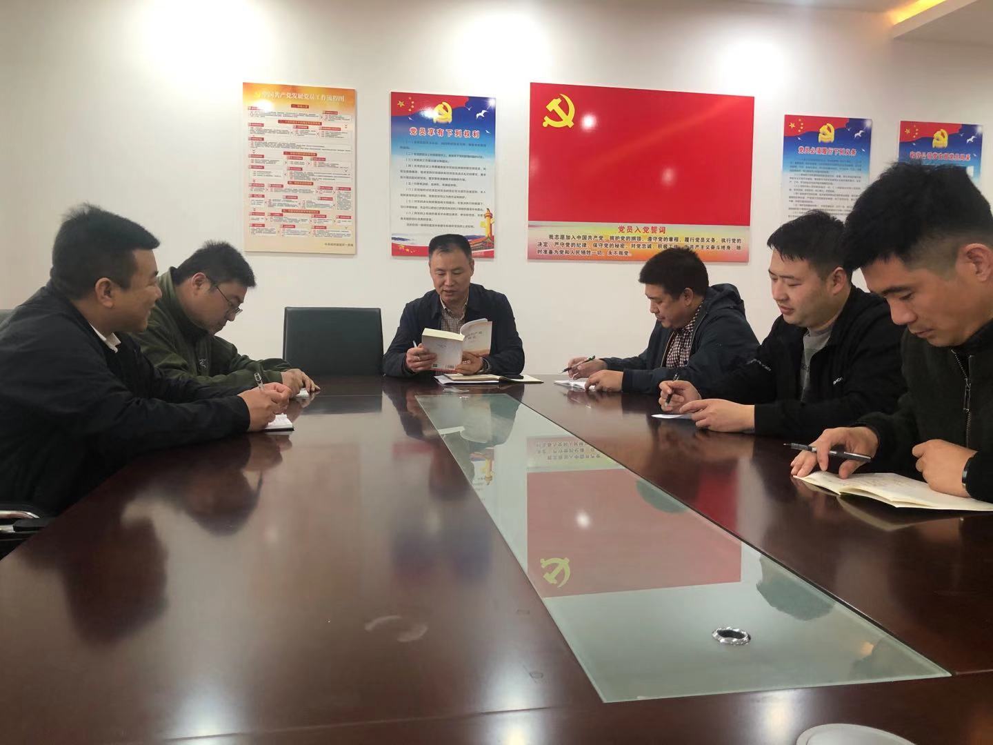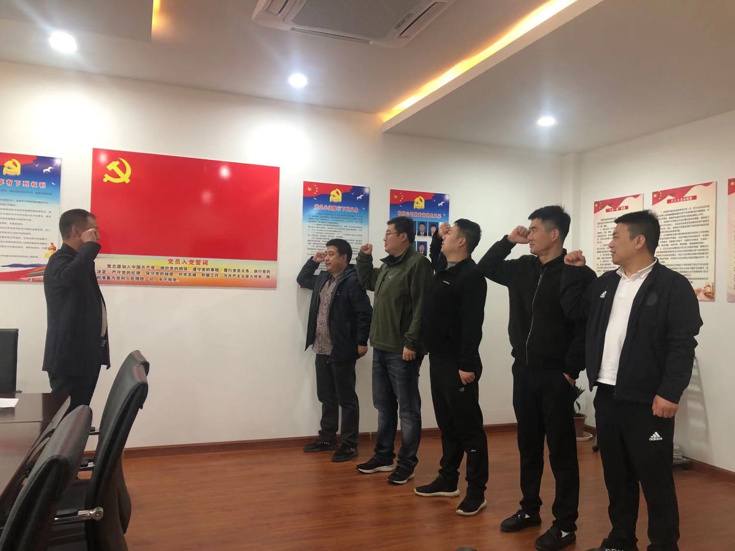 在党员学习活动室内,全体党员举起右手,面向党旗,庄严宣誓。课后,全体党员纷纷表示要按照习总书记提出的“四讲四有”标准做一名合格的共产党员。真正把党史学习转化为履职尽责的内在动力和行动指南,要以时不我待、只争朝夕的责任感、紧迫感,冲锋在前,为企业转型发展贡献自己的一份力量。