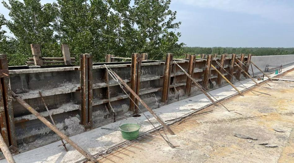 新沂市合沟沂河大桥于K1+490位置处跨越沂河,沂河东西大堤间,路线与沂河右偏角90°,本桥平面位于直线上,路线长0.910km。本桥主跨采用40m及35m组合箱梁,主河槽内采用40m跨径,其余采用35m跨径。该大桥承载着徐州新沂及邳州两地百姓通行的迫切愿望,在施工过程中,工程面临着诸多挑战,土地征拆以及汛期管控等因素,都曾给施工进度带来不小的阻碍。参建各方努力破局,在2024年二次进场后抢工期、积极协调,在严格确保大桥质量安全可控的前提下,全力推进工程建设。