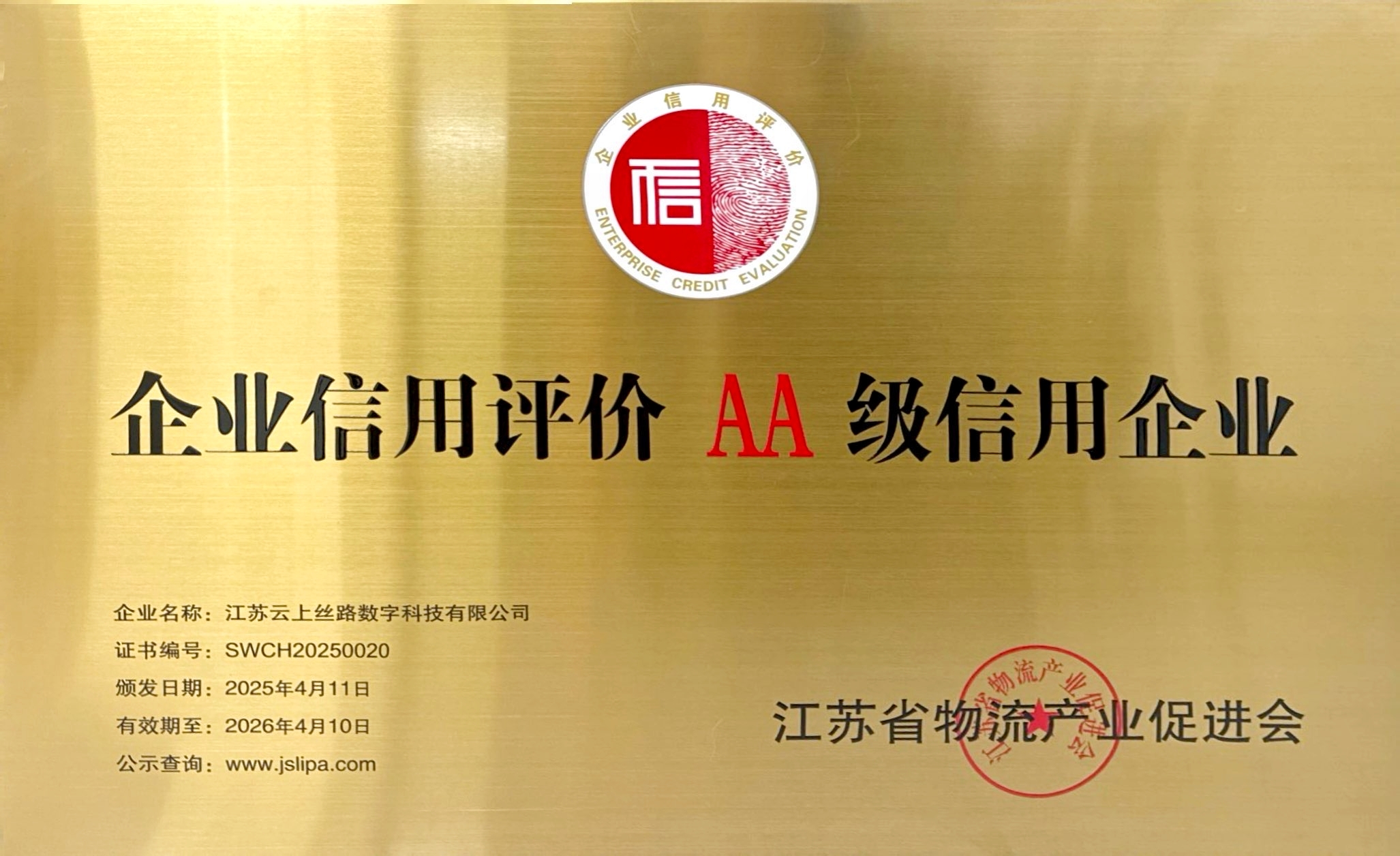 4月11日,由江苏省物流产业促进会主办的2025年物流行业政策解读培训会在南京召开。江苏云上丝路数字科技有限千亿官方网页版凭借卓越的企业信用与行业贡献,荣获“企业信用评价AA级信用企业”称号。这一荣誉不仅是对云上丝路企业信誉的认可,更是对其在智慧物流领域创新实践的充分肯定。