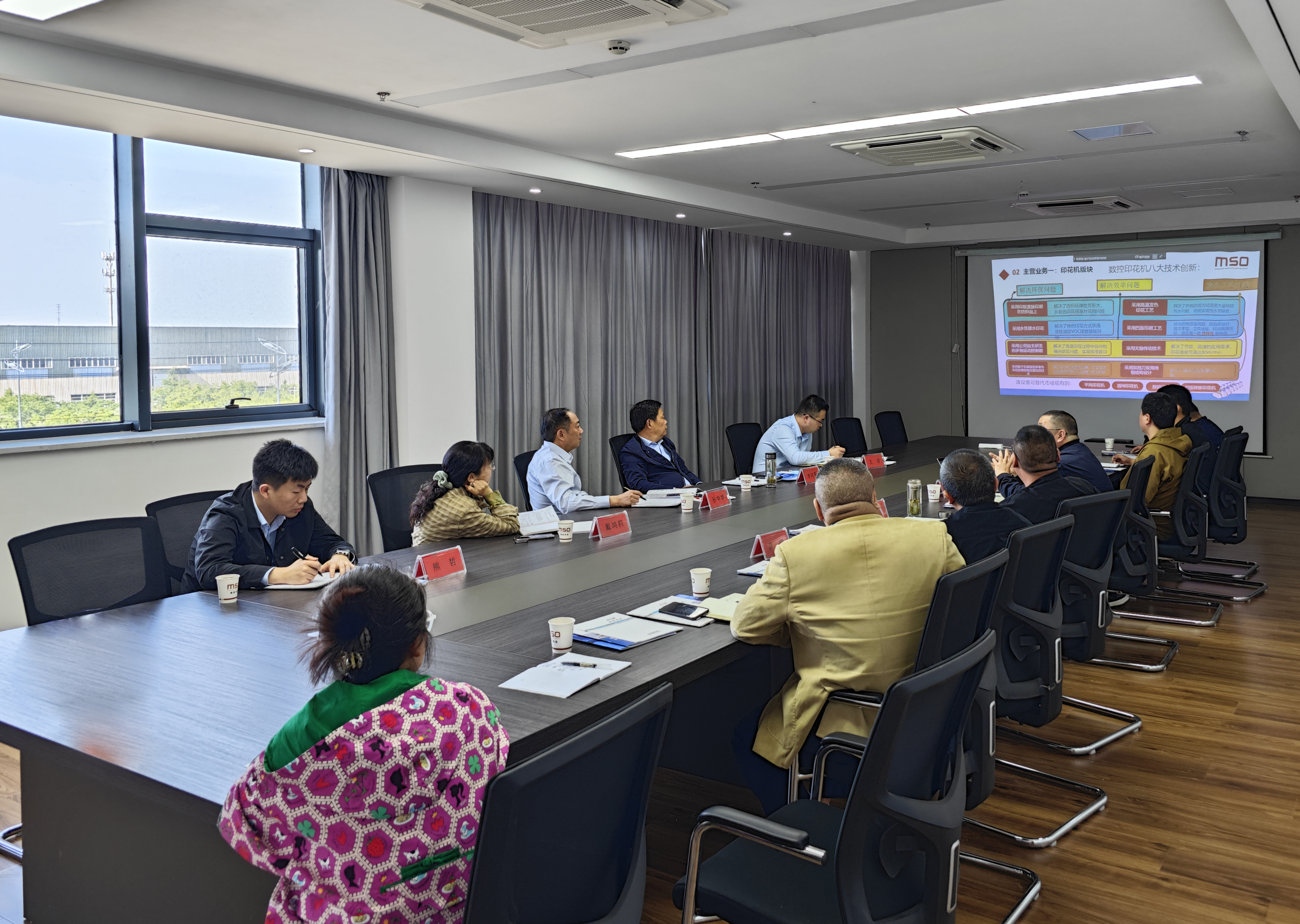 孙中华一行实地参观了MSO高速凹版印花成套设备、智能移动机器人等生产车间,深入了解千亿官方网页版发展历史沿革、研发成果、技术应用及上市规划等情况;海宏科技千亿官方网页版负责人围绕千亿官方网页版三大业务板块、两大发展定位、技术优势以及后续发展计划作了详细汇报。