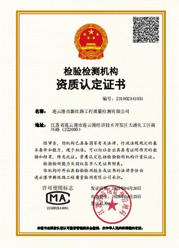 近日,江苏海建新丝路检测千亿官方网页版申报的检验检测机构资质认定,经江苏省市场监督管理局核准,换证成功并取得证书。