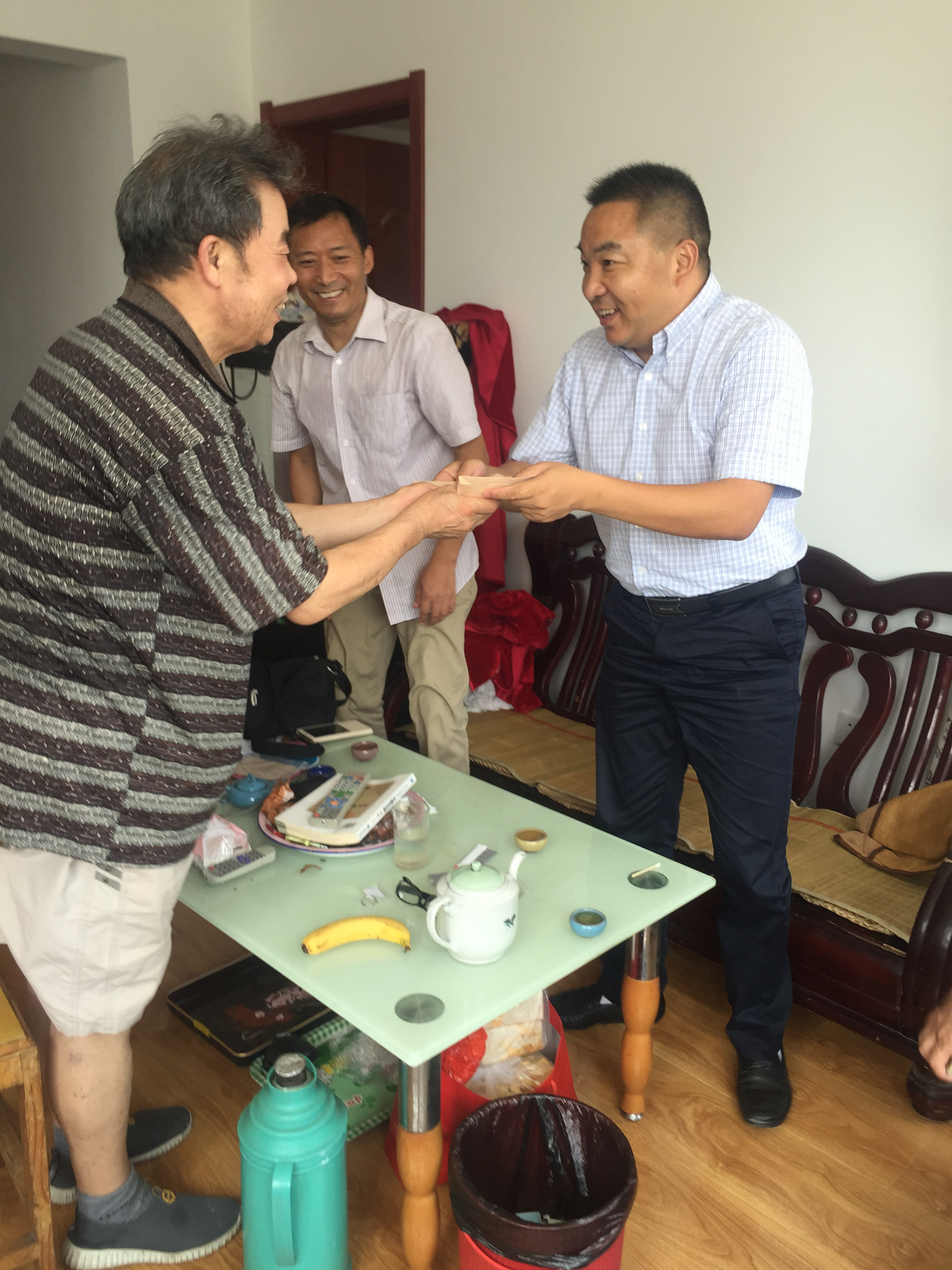 8月1日上午,海通物流千亿官方网页版党委书记、总经理张国兴、副总经理仲济强来到明日海运千亿官方网页版军转干孙开森家中走访,海运千亿官方网页版副总经理夏兴明参与