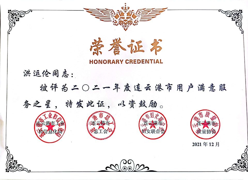 近日,公交千亿(中国)有限千亿官方网页版公交事业二部(原东部公交)荣获由连云港市工业和信息化局、市总工会、市妇女联合会、市质量协会联合颁发的“2021年度连云港市用户满意服务单位”荣誉称号;公交事业二部洪运伦荣获“2021年度连云港市用户满意服务之星”称号。