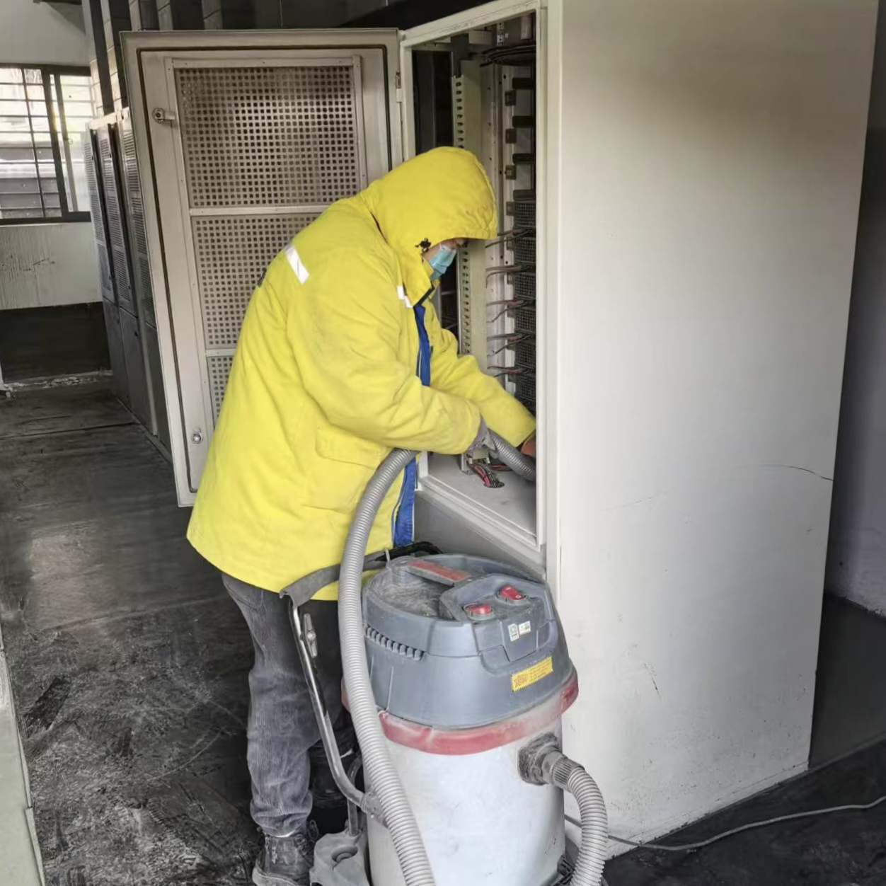 在维护作业现场,运维人员秉持严谨细致的工作态度,严格遵循安全规范,作业前先行关闭电源,确保作业全程安全无虞。他们手持工具,轻拭设备外壳,去除附着灰尘;面对整流柜、变压器等关键核心部件,更是借助专业设备细致吸尘清洁。此番操作旨在预防设备长期运行积尘过多,避免因积尘引发过热问题,进而影响介电性能,保障设备健康稳定运行。整个除尘过程中,运维人员全神贯注、一丝不苟,除尘作业完成后,立即对设备进行全面功能测试,确保设备恢复至最佳运行状态,各项功能正常运转。