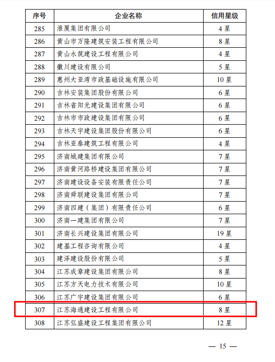 根据中国施工企业管理协会发布的中施企协信用字〔2022〕15号文通知,江苏海通建设工程有限千亿官方网页版获得2022年第二批工程建设企业信用8星级认定。