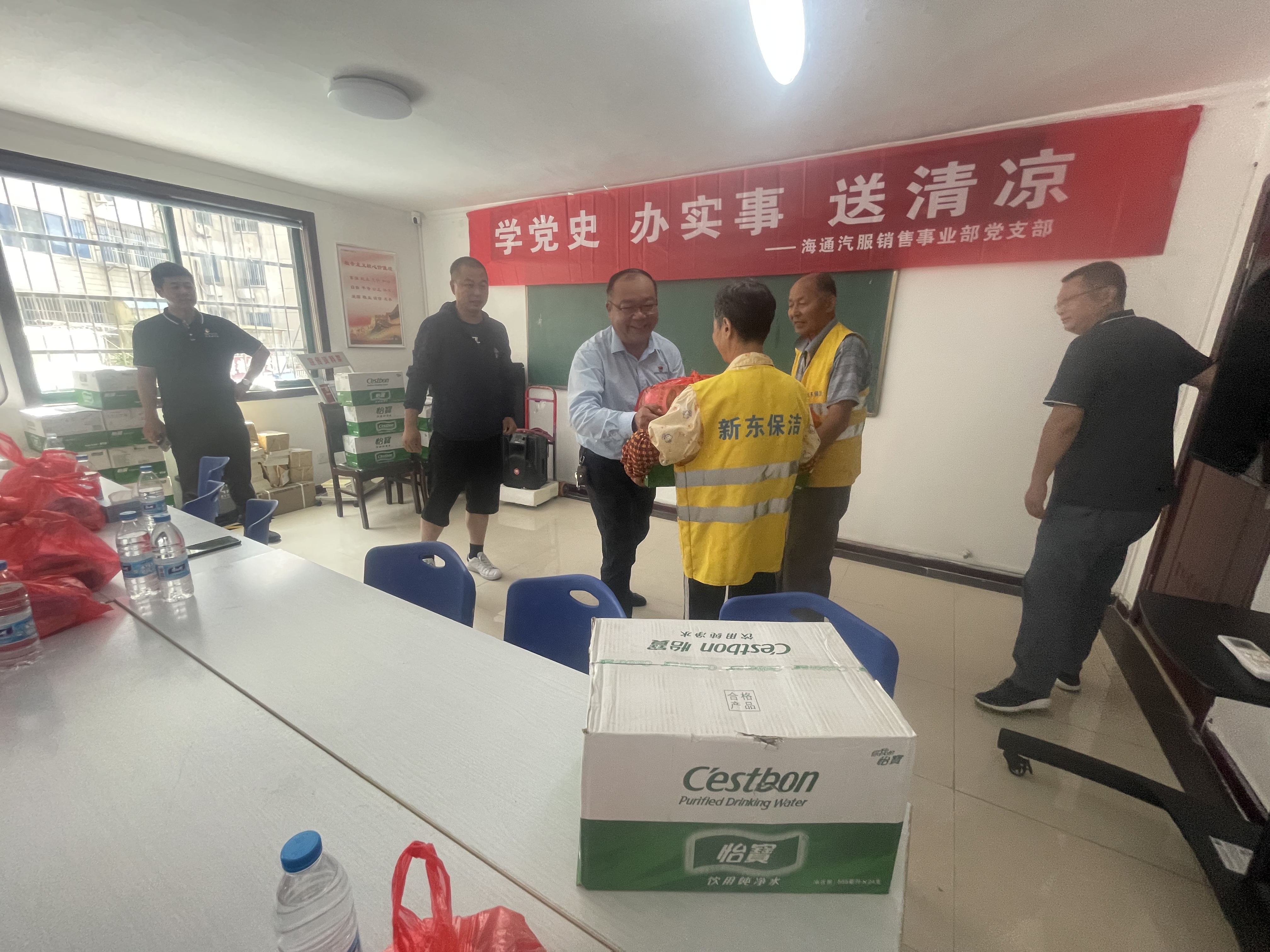 入伏以来,港城持续高温,酷暑难耐,马路上的环卫工人们高温下依旧坚守岗位,用辛勤和汗水守卫着港城干净卫生,7月23日上午,汽车销售事业部党支部联合市海州区东风社区开展“学党史 办实事 送清凉”慰问活动,为社区内奋斗在一线的环卫工人送上了一份清凉和一份关怀。