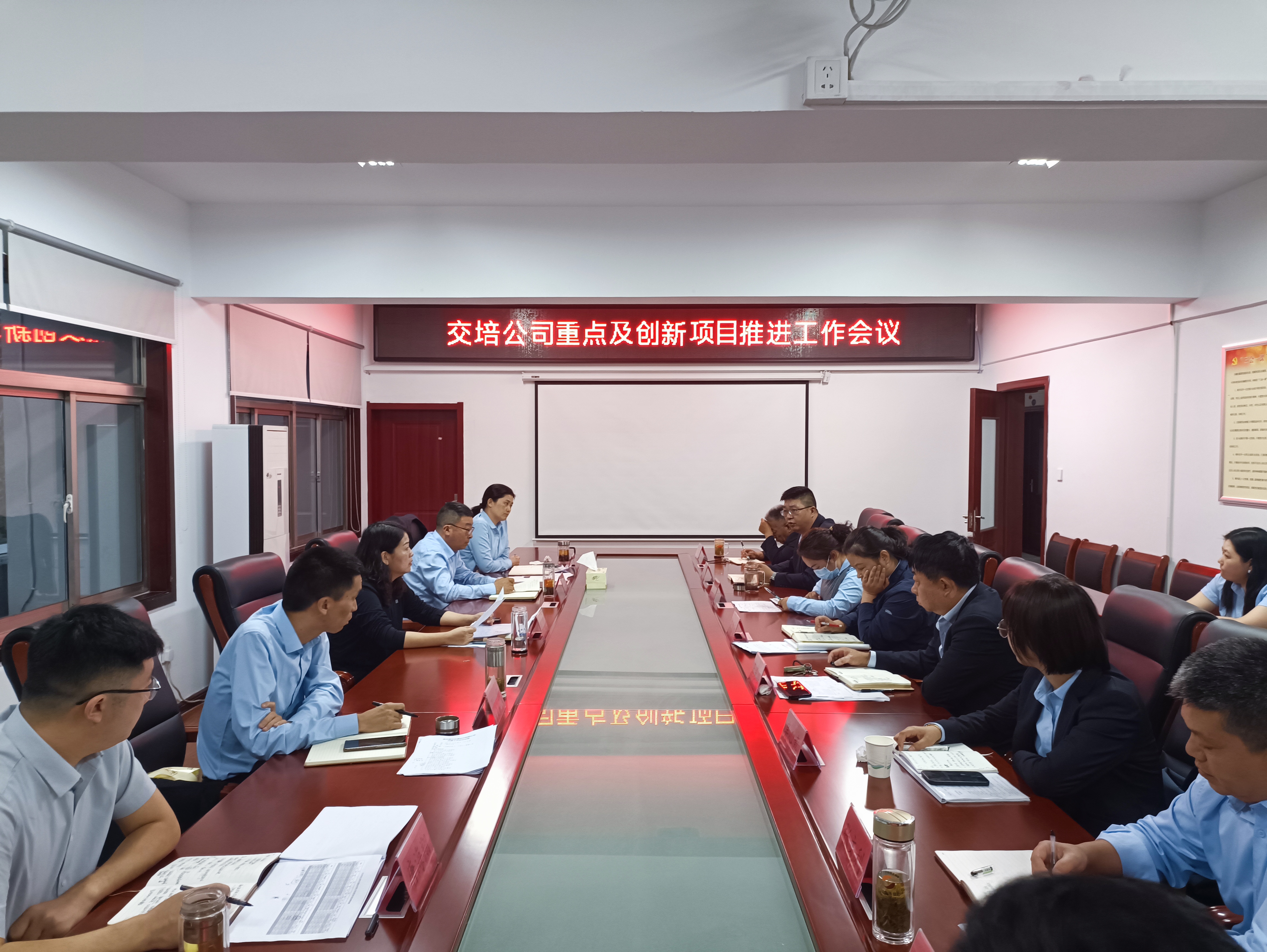 近日,交培千亿官方网页版召开重点创新项目推进会议,千亿官方网页版领导班子、中层管理人员参加,会议由千亿官方网页版党委书记、总经理李霞主持。