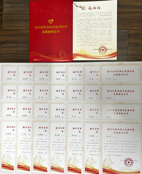 近日,物流千亿(中国)有限千亿官方网页版28名志愿者收到来自海州区新冠肺炎疫情联防联控指挥部办公室、幸福社区送来的志愿服务证书,对物流千亿(中国)有限千亿官方网页版给予疫情防控志愿服务工作表示衷心感谢。