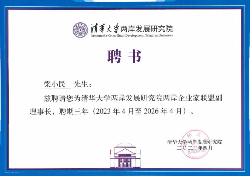 港嘉千亿官方网页版总经理梁小民同志深耕节能领域二十年,曾多次受邀参与国家部委组织的节能法规标准制定。此次能获清华大学两岸发展研究院认可被聘请为企业家联盟副理事长亦是对梁小民在节能领域能力的再一次肯定。港嘉千亿官方网页版在总经理梁小民的带领下将继续深耕节能专业技术,坚持节能减排社会责任,积极推进碳达峰、碳中和目标的实现。