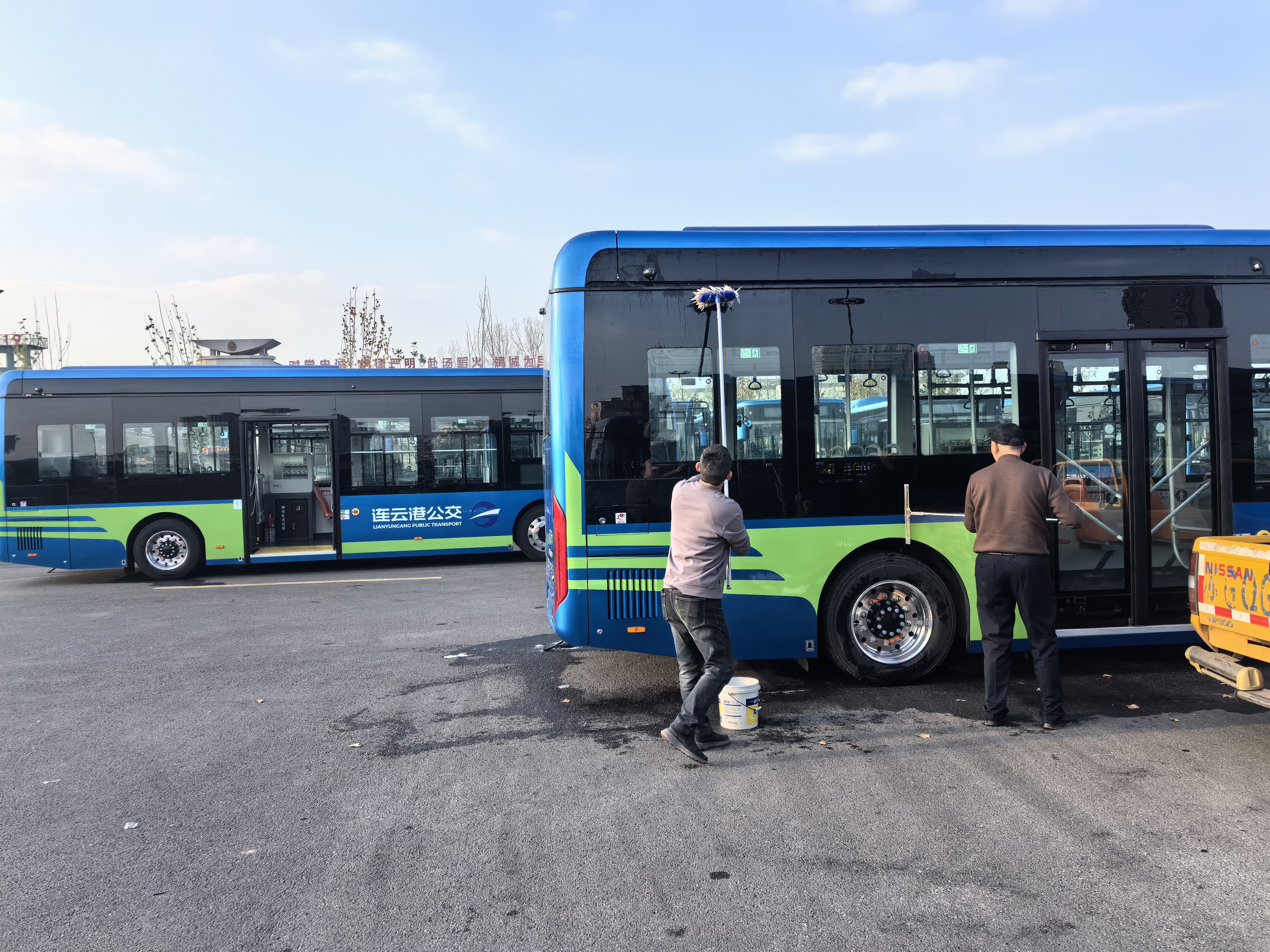 12月11日,在公交千亿(中国)有限千亿官方网页版财校公交场站看到,一辆辆崭新的新能源公交车依次停放,工作人员忙碌着调试投币机等设施设备,并对车辆内外进行全面擦洗,为第二天的新车投入运营进行着最后的准备。新购置的公交车依旧延续着特有的“公交蓝”为主基调,不仅有较长的车身和低踏板设计,使得车厢显得宽敞、明亮,更有着很多人性化的设计理念,如手机充电设施、自动售卖机等便民服务设施,可谓是“颜值”和“实用”并存,使市民出行乘坐更为便捷。
