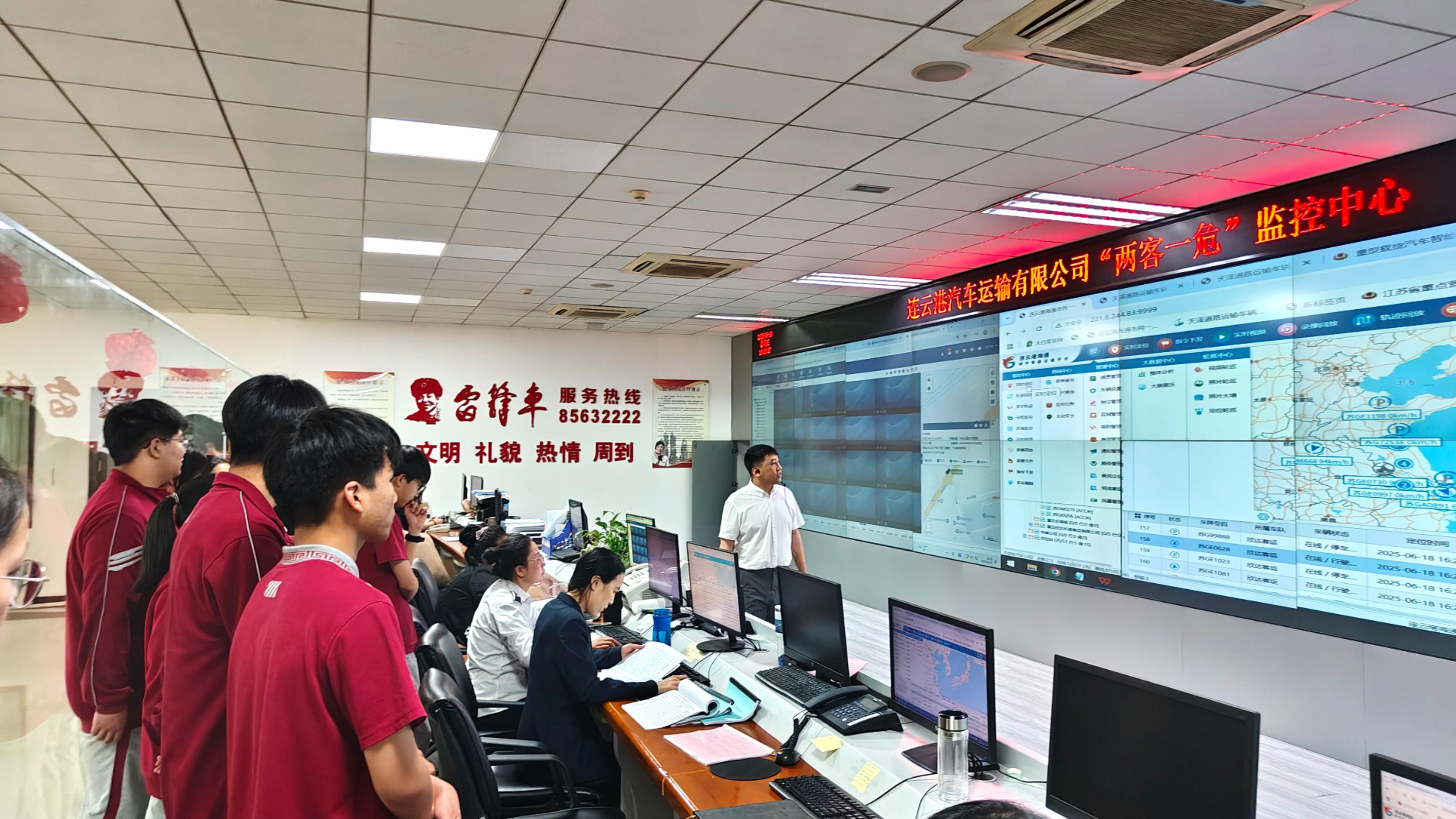 随后,同学们走进汽车千亿官方网页版“两客一危”监控中心。巨幅电子屏幕上,危化品运输车辆的实时轨迹、驾驶员状态、车辆运行参数等数据动态更新,智能预警系统不断闪烁提示。中心负责人向同学们展示了先进的监控设备和智能化管理系统,详细介绍了如何通过实时监控、数据分析等手段,对危化品运输车辆进行全方位、全过程的动态监管,确保运输安全。同学们直观地感受到了科技在危化品安全管理中的重要作用,也深刻认识到安全管理工作的严谨性和重要性。