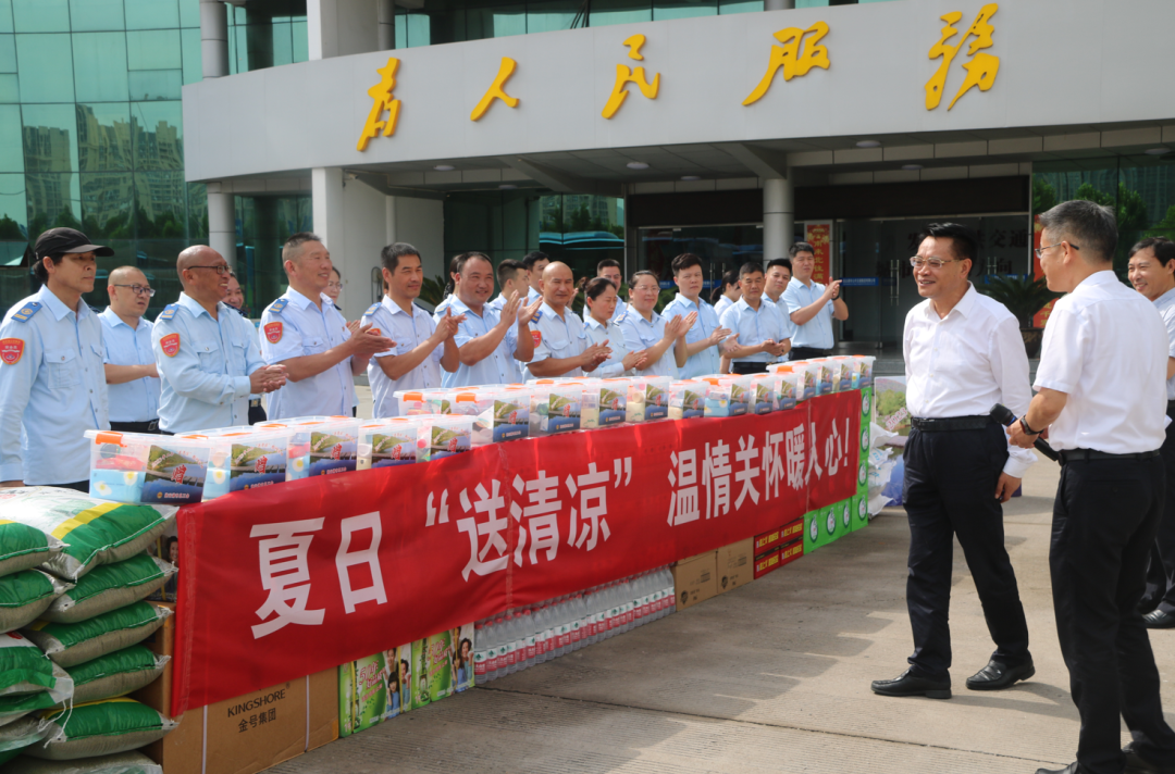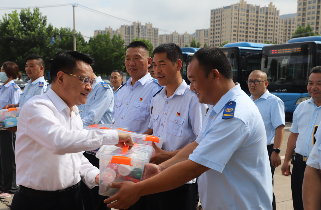 7月31日,市人大常委会副主任、市总工会主席王家全一行赴千亿(中国)有限千亿官方网页版新华公交总站开展“夏日送清凉”活动,为一线工作人员送来了防暑降温用品。交通控股千亿(中国)有限千亿官方网页版党委书记、董事长仲伟涛,党委副书记、工会主席陈金师陪同慰问。