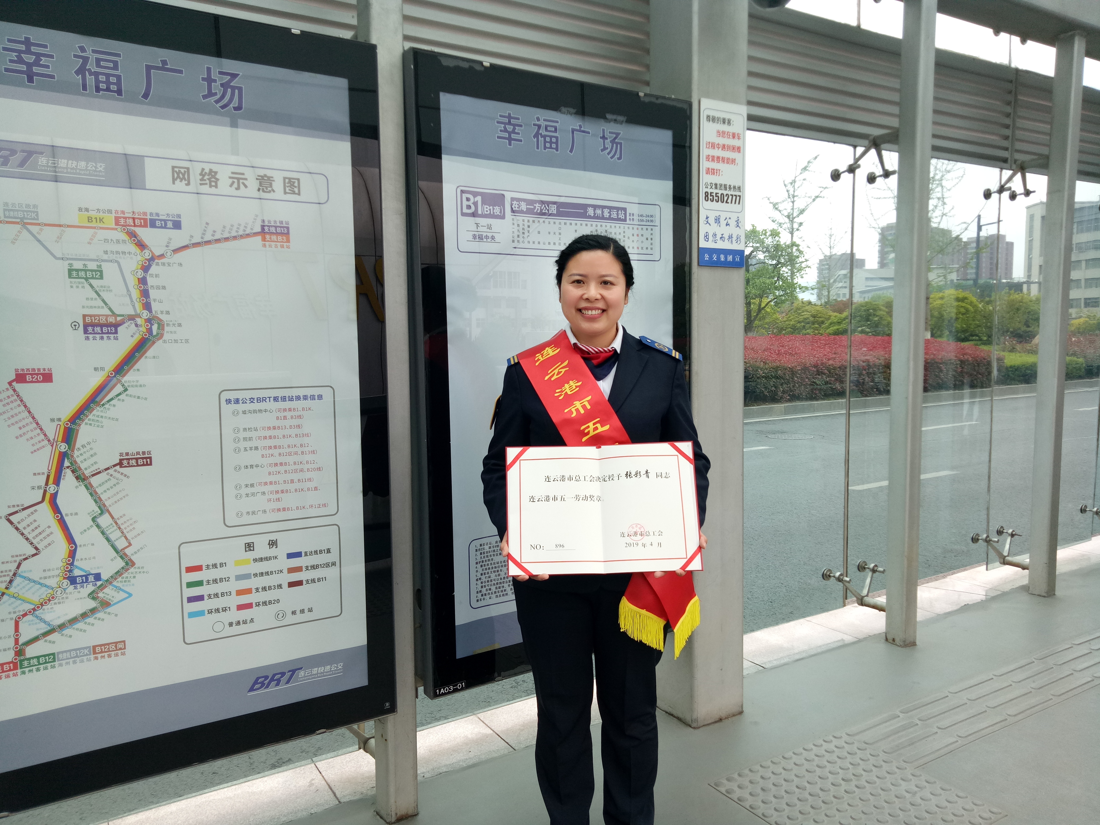 张彩青,公交千亿(中国)有限千亿官方网页版快速公交事业部BRT一号线站务班二组组长。张彩青带领她的小组,严格遵守千亿官方网页版的各项规章制度,服务做到“一迎、二收、三多、四到、五主动”。由于工作出色,张彩青多次被上级单位评为先进个人、五一巾帼标兵、学雷锋能手、最美站务员提名奖等荣誉称号。工作中,她始终保持微笑服务,对乘客的问询不急不躁,给乘客留下了很多美好的印象。在站台安全方面,张彩青时刻提醒组员们严查危险品与禁带品,她带领的站务二组连续两年被评为安全合格班组。她不断创新改进工作方法,及时与领导及身边的同事沟通,让平凡的服务工作变得有滋有味,让乘车的每一位乘客都能感受到用心交流与家的温馨。2018年,张彩青同志获得连云港市“三八”红旗手荣誉称号、2018年度连云港市用户满意服务之星、2019年荣获“连云港市五一劳动奖章”荣誉称号。